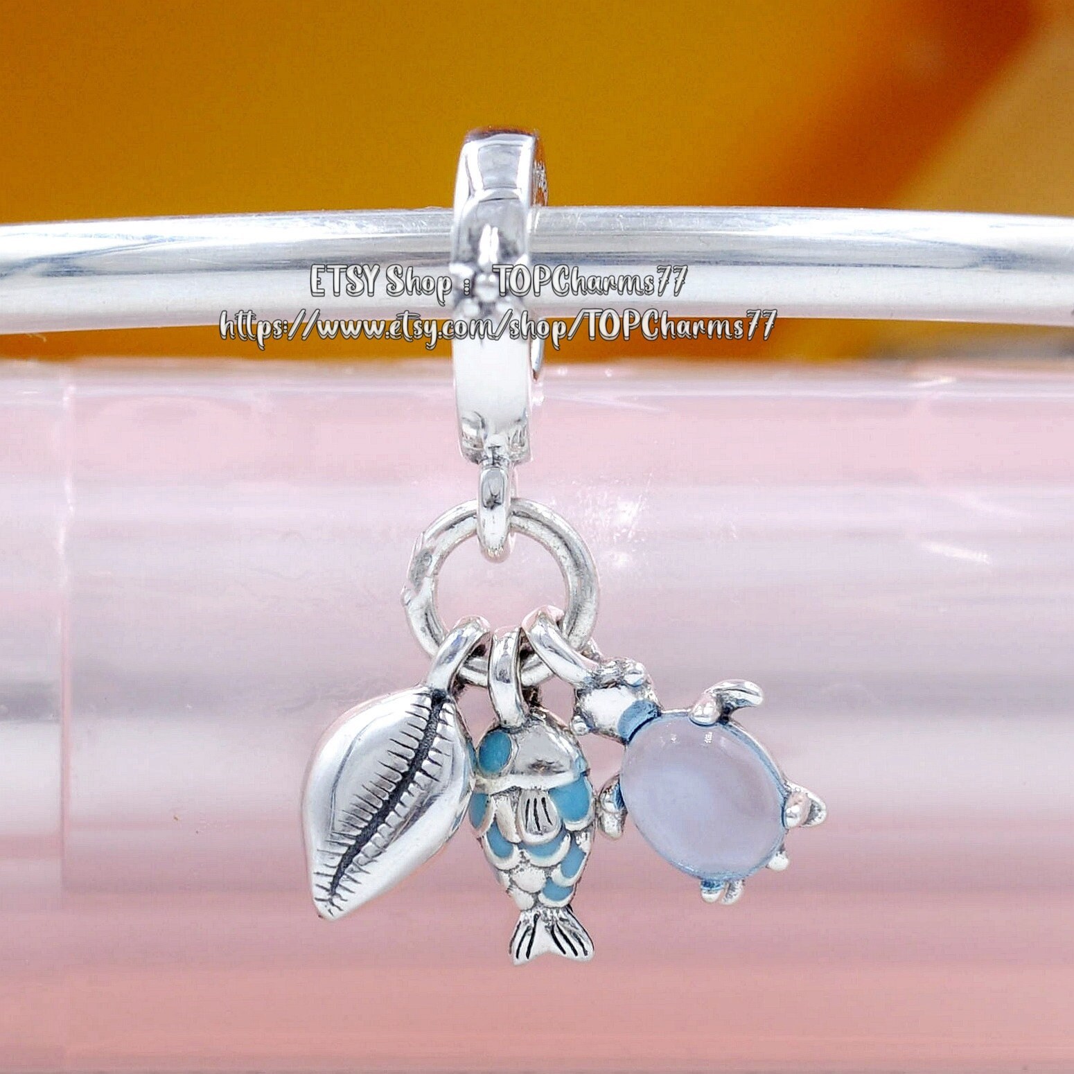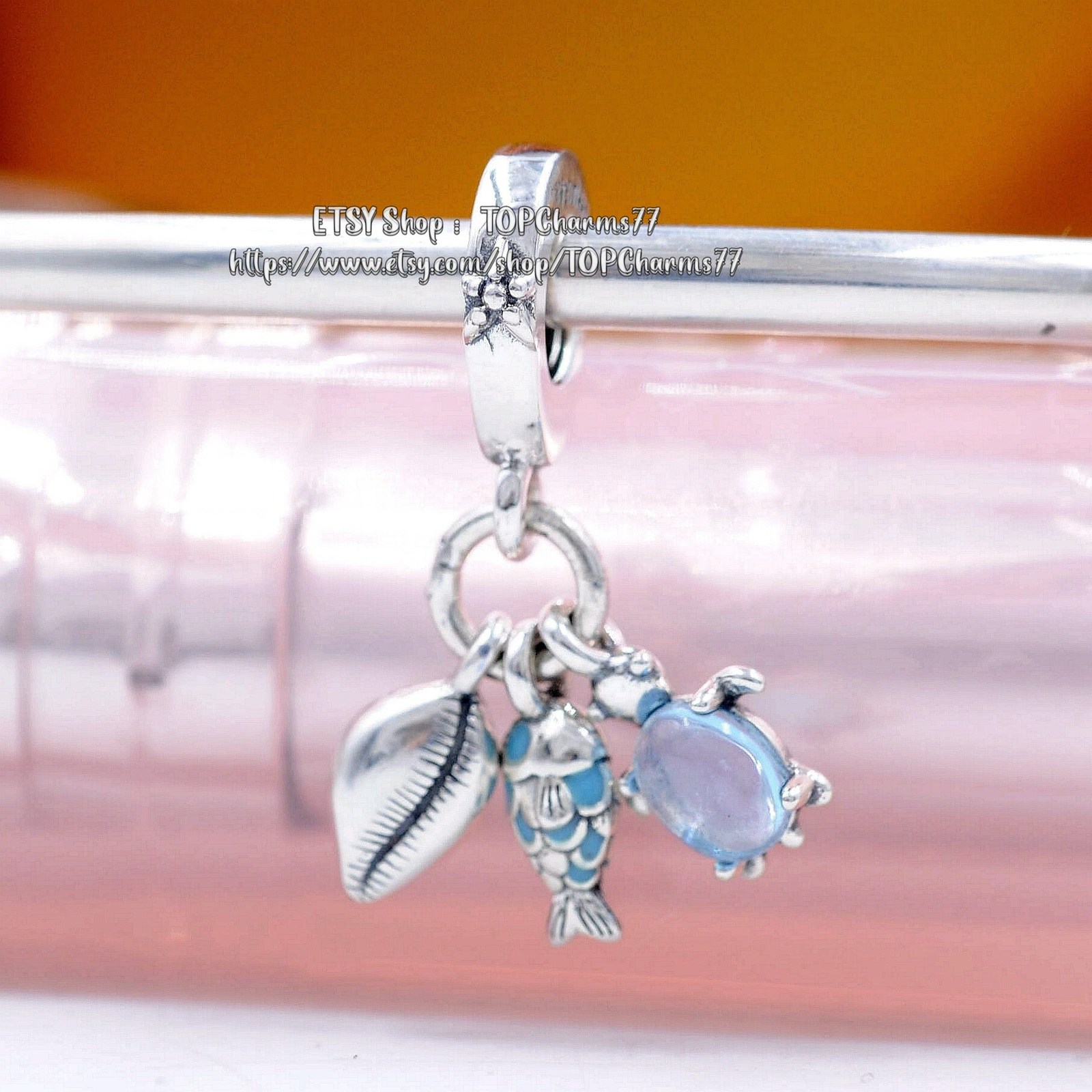 2022 Summer Release 925 Silver Fish , Sea Turtle & Conch Triple Dangle Charm