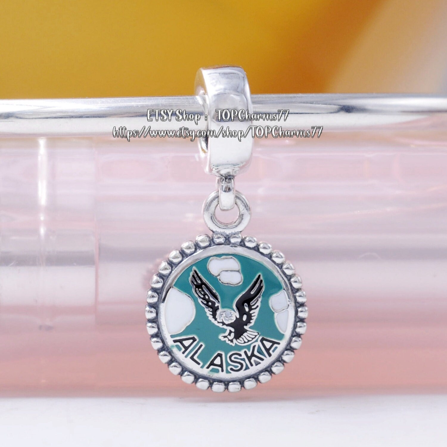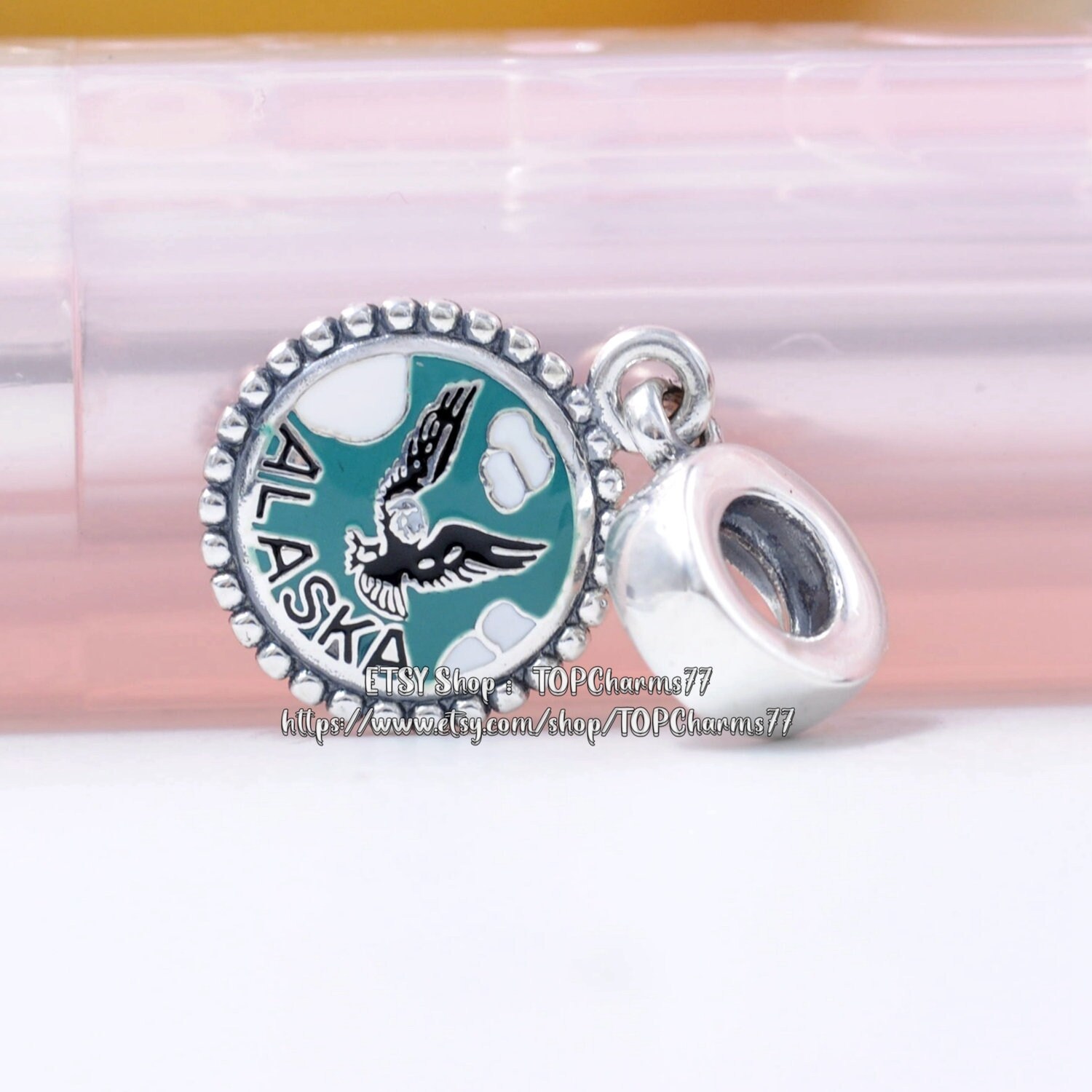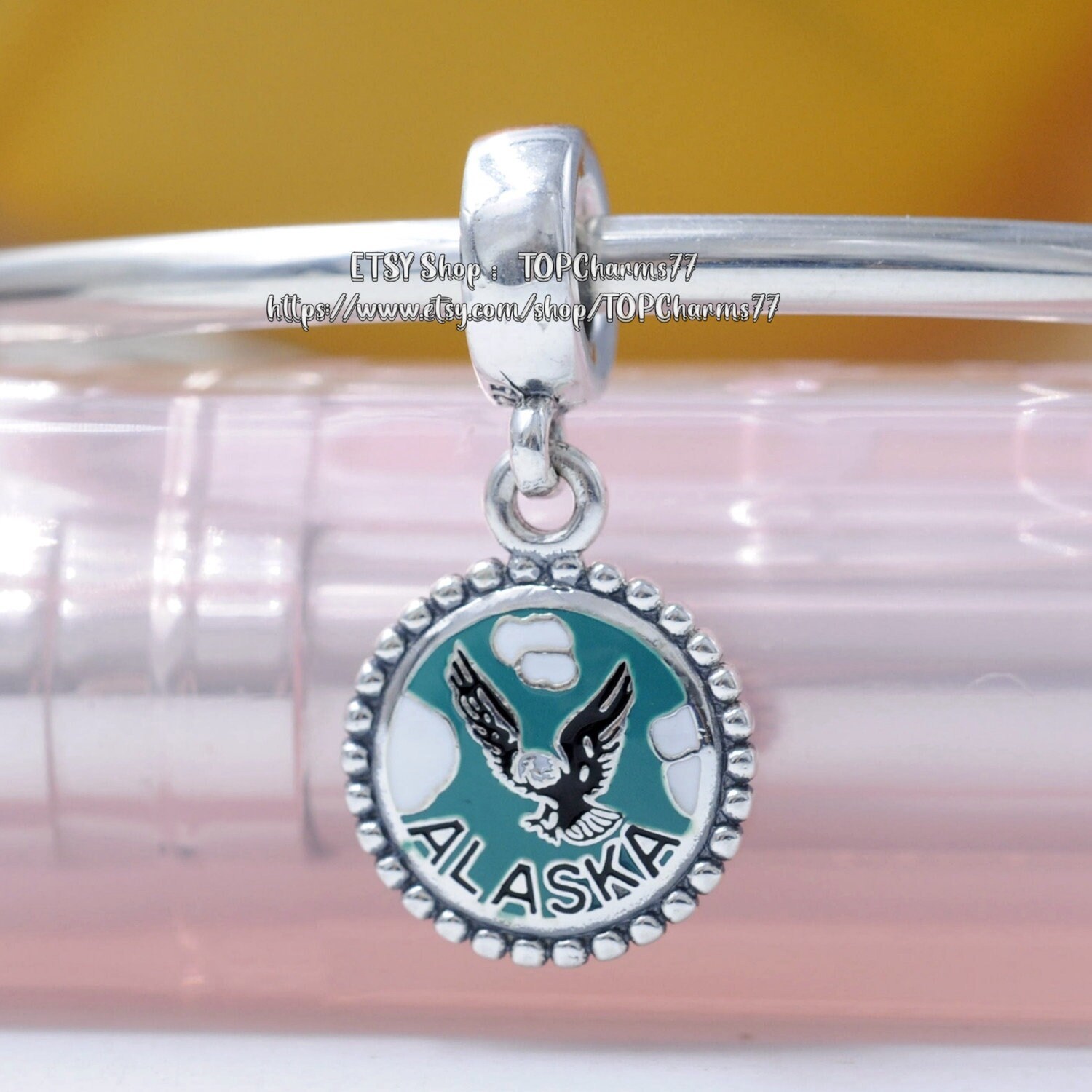 925 Sterling Silver Exclusive Alaska The Bald Eagle Dangle Charm With Enamel
