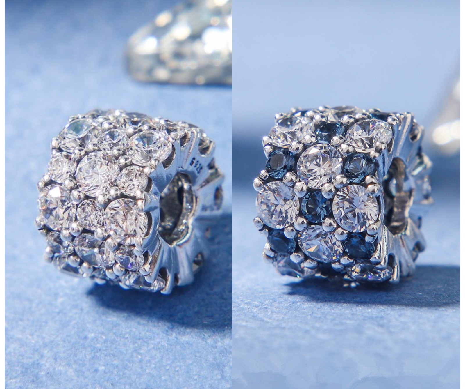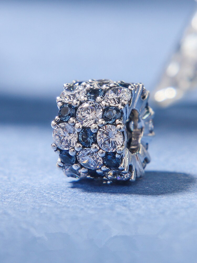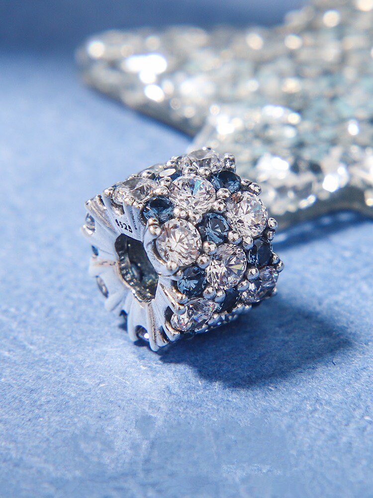 Winter Release 925 Sterling Silver Blue Clear & Clear Sparkle Charm With CZ