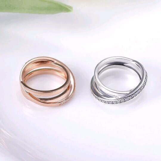 925 Sterling Silver and 14k Rose Gold-plated Crossover Triple Band Ring