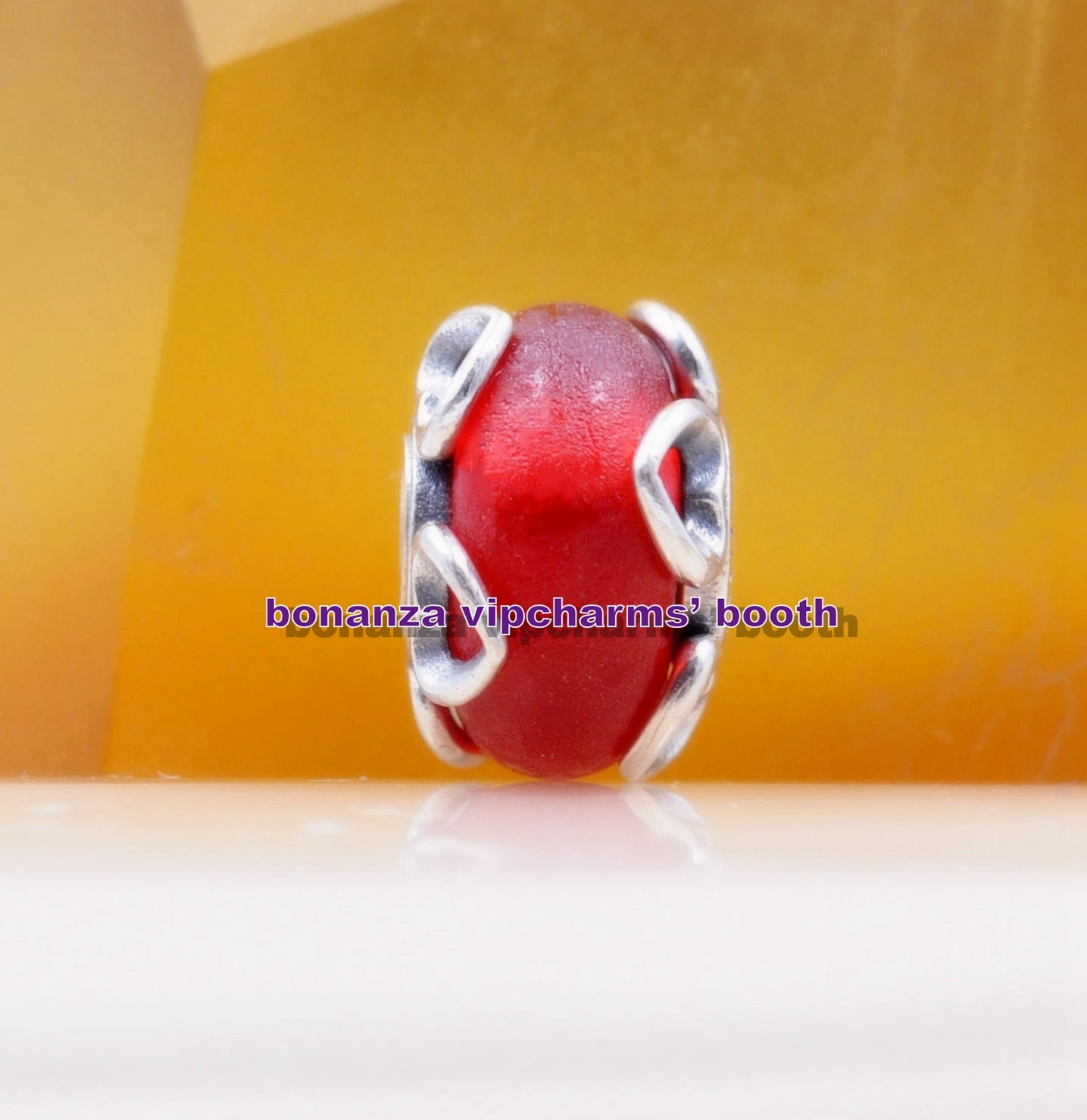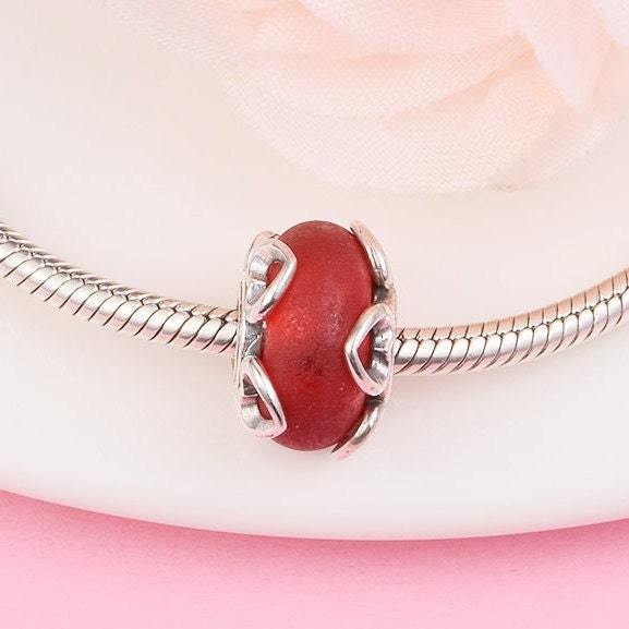 Valentine's day Release Sterling Silve Frosted Red Murano Glass and Hearts Charm