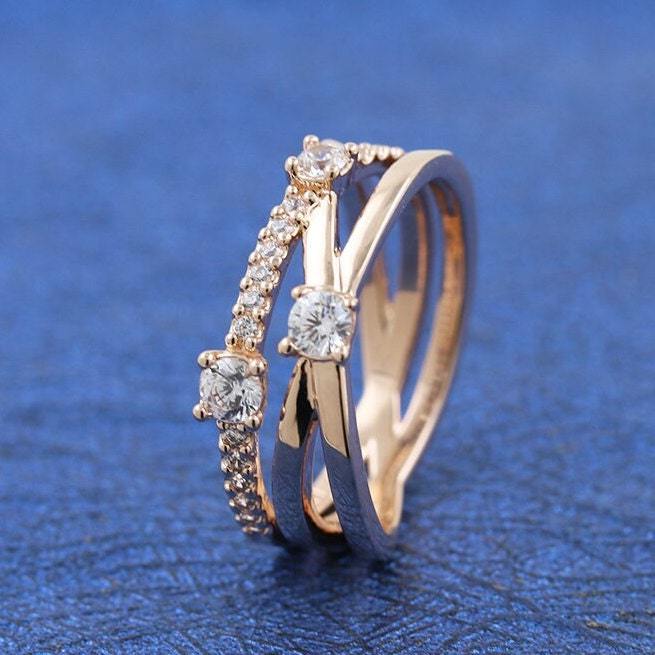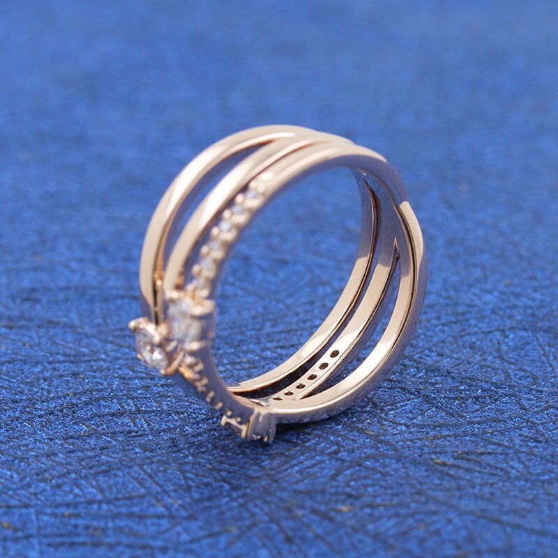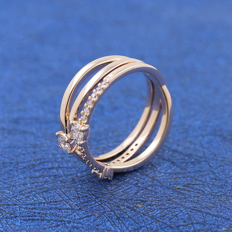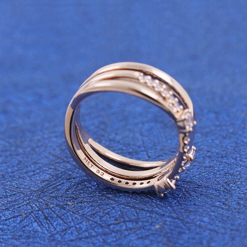2021 Mother's Day Release Rose Gold Sparkling Triple Band Ring