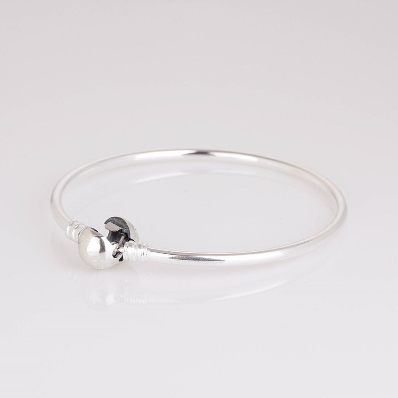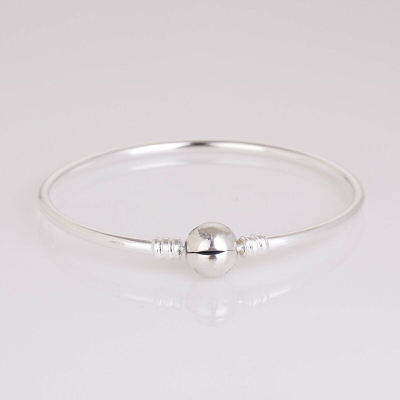 Real 925 Sterling Silver with Barrel Clasp Bangle Bracelet Fit DIY Moments Charm