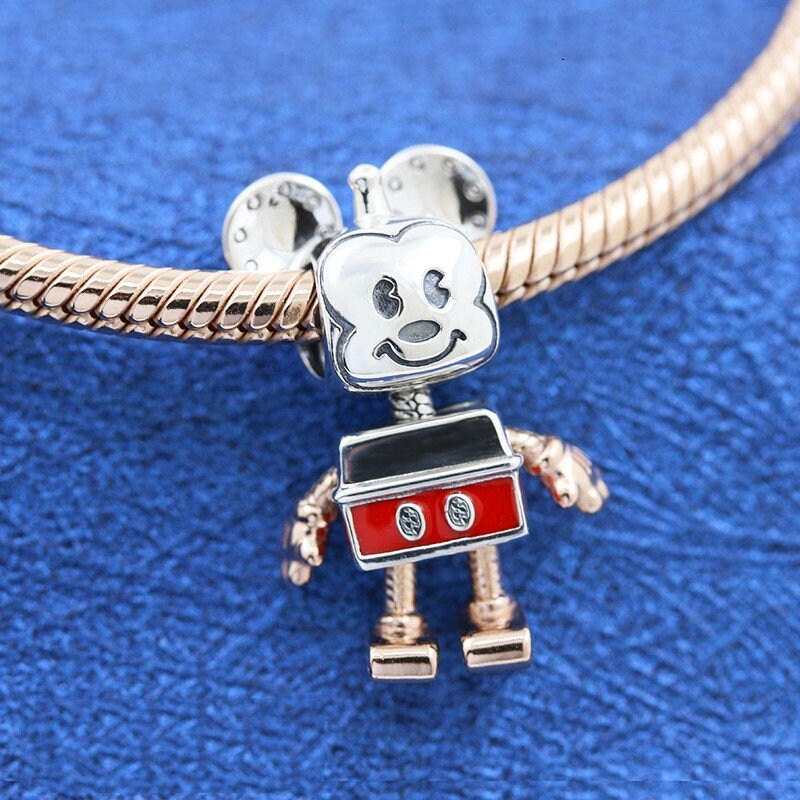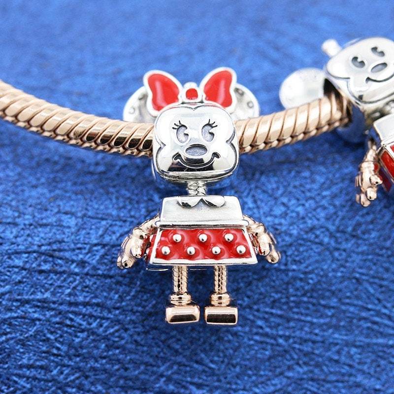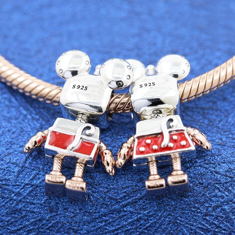 925 Sterling Silver and Rose Gold Disney Mickey Mouse & Minnie Mouse Robot Charm