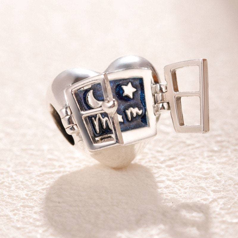 2019 Mother's Day Release Sterling Silver Window Heart Charm With Bule Enamel