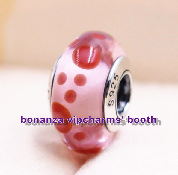 925 Sterling Silver Handmade Glass Bead Cherry Red Bubbles Murano Glass Charm