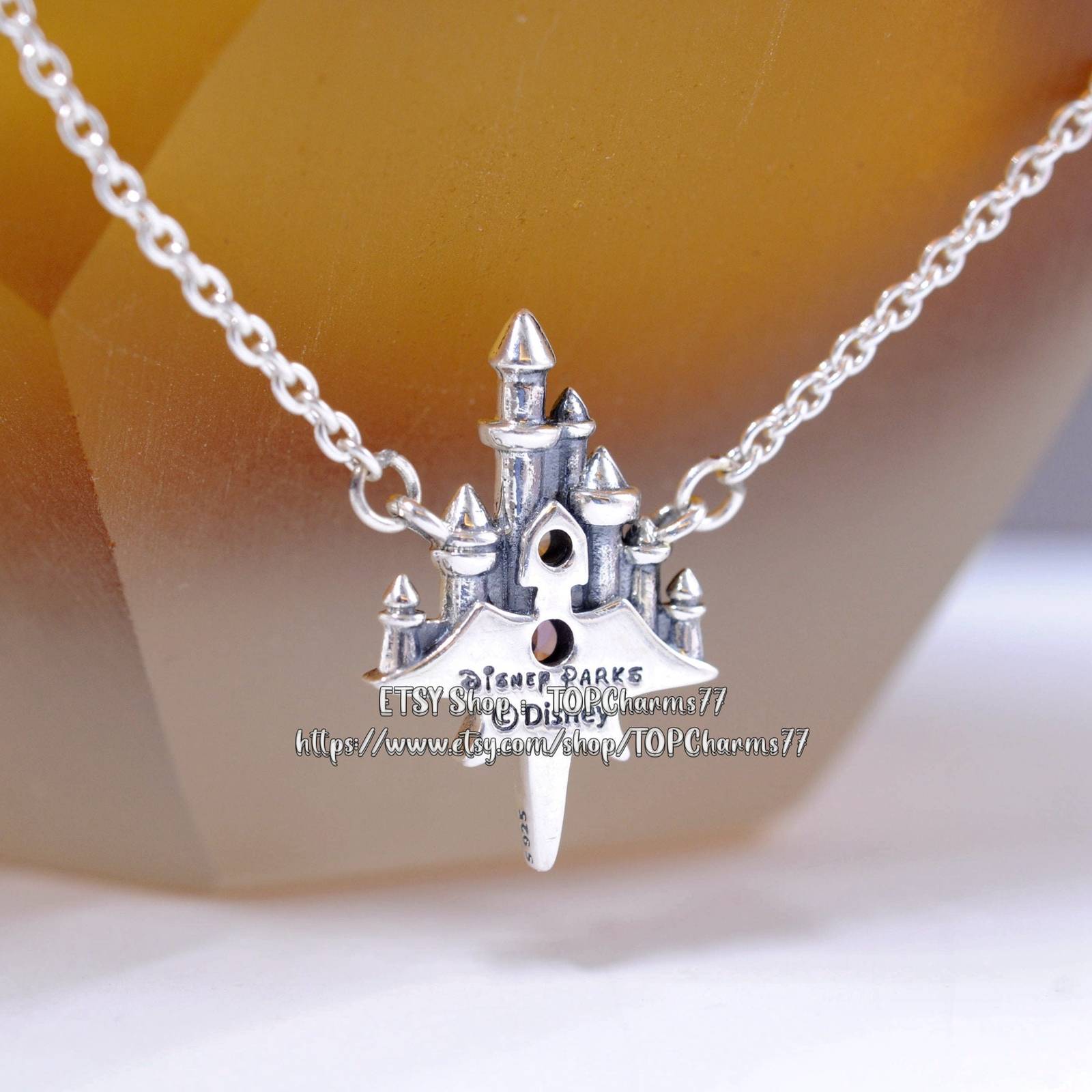 Disney Parks Exclusive 925 Sterling Silver Fantasyland Castle Necklace 45CM