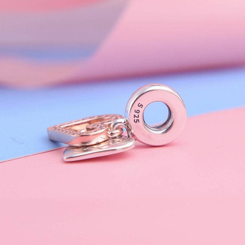 Valentine Two Tone 925 Silver & Rose™ Sparkling Freehand Heart Dangle Charm