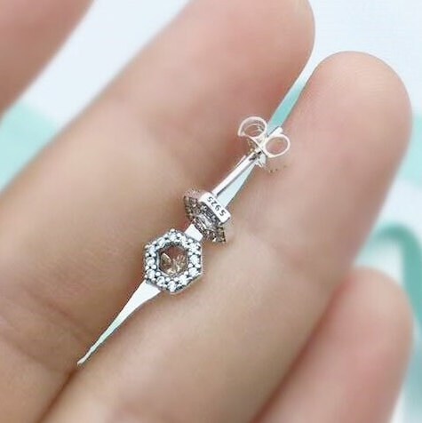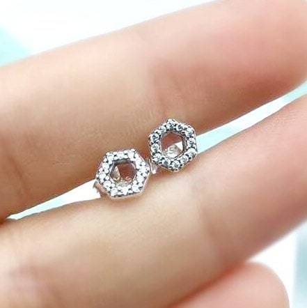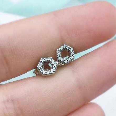 S925 Sterling Silver Sparkling Honeycomb Hexagon Stud Earrings CZ Stud Earrings