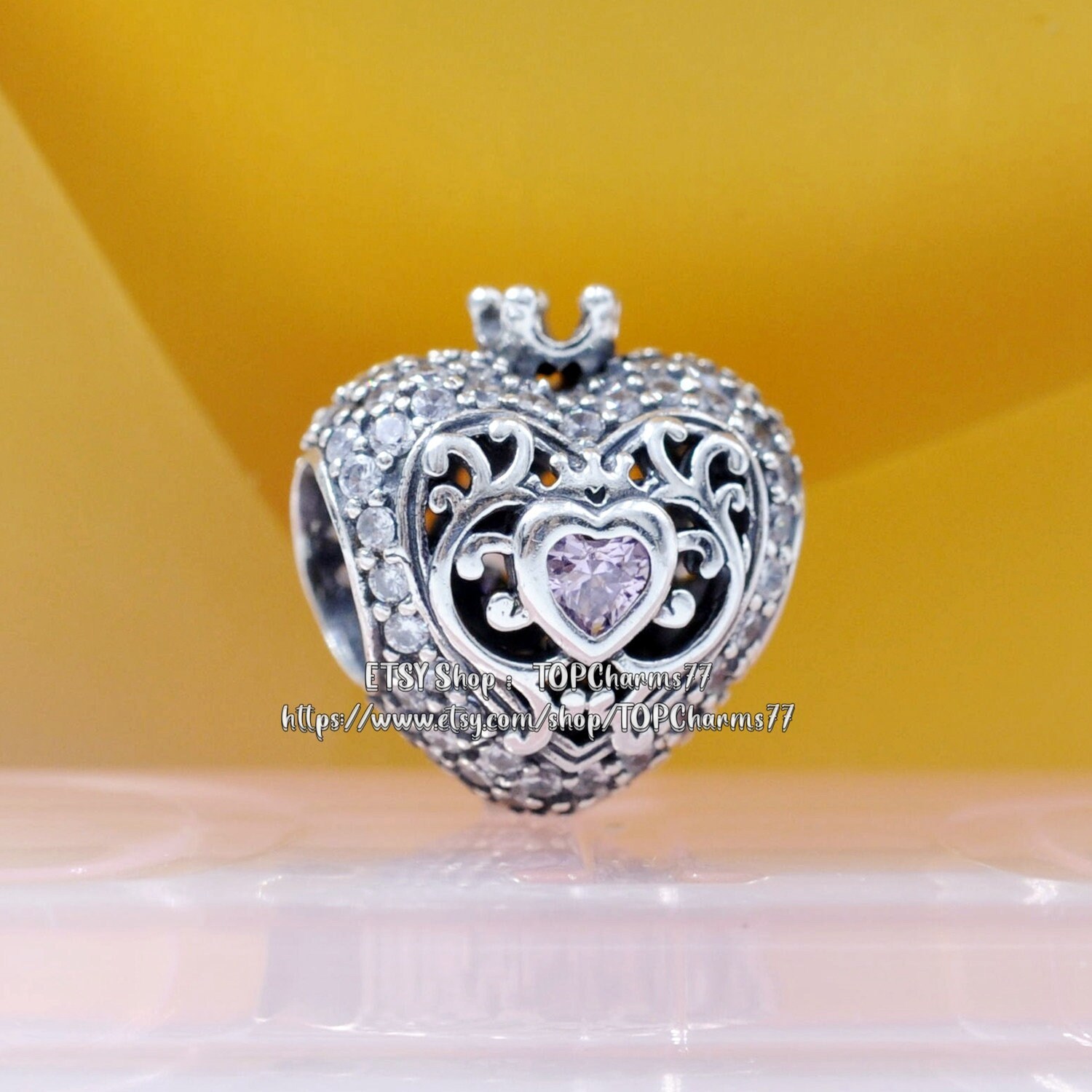 2022 Spring Release Sterling Silver Regal Crown & Heart Charm With Pink Cz
