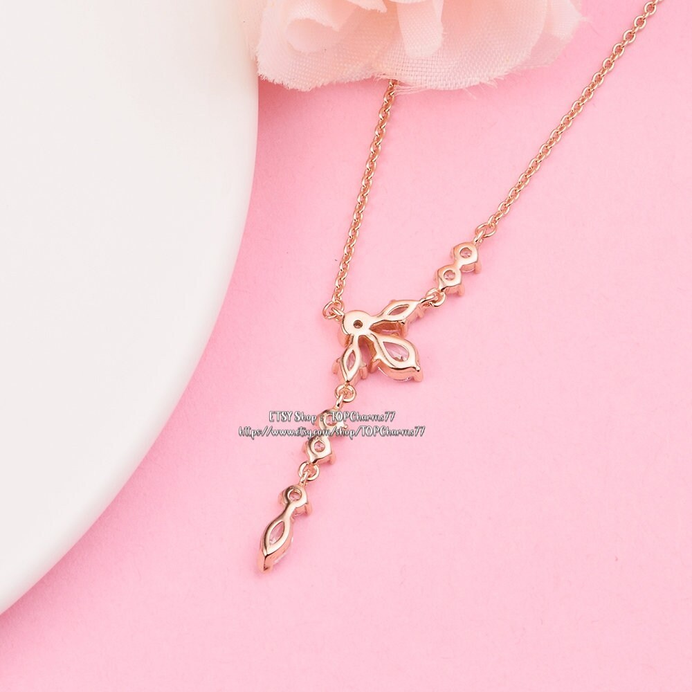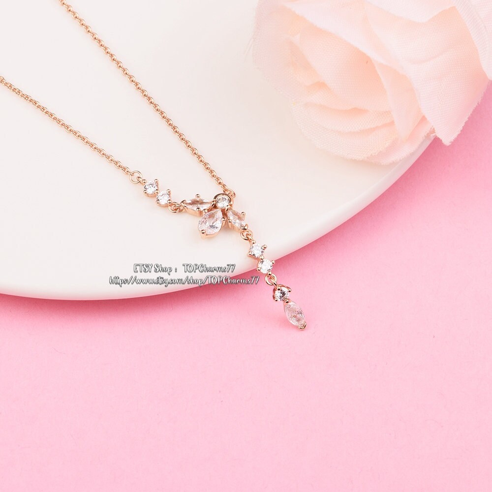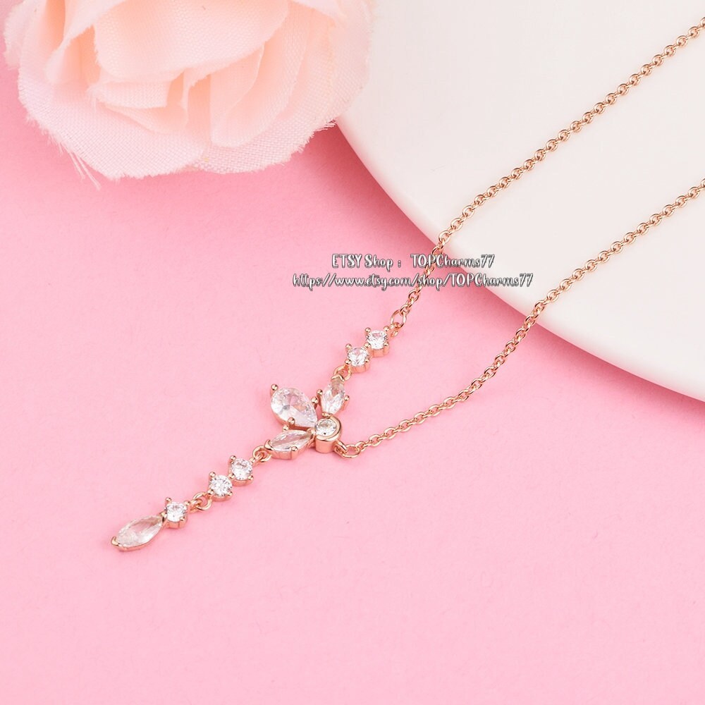 14k Rose gold-plated Sparkling Herbarium Cluster Drop Collier Necklace 45CM