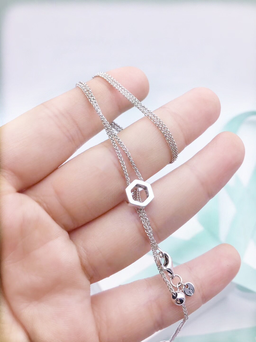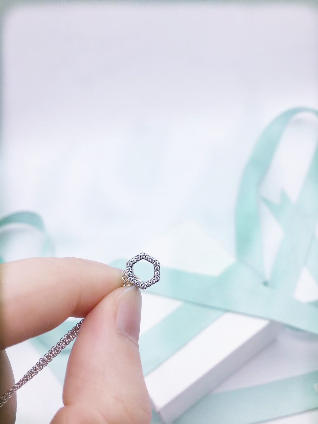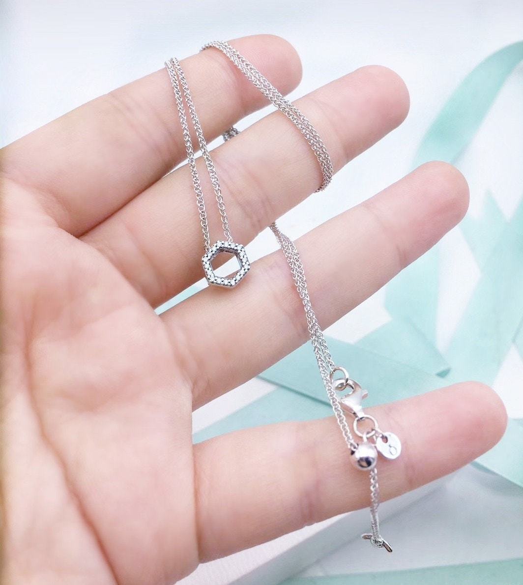 925 Sterling Silver Sparkling Honeycomb Hexagon Collier Necklace 50CM