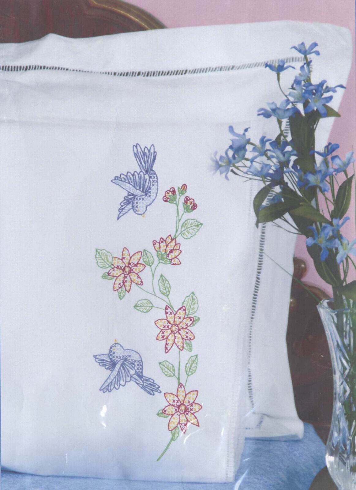 Jack Dempsey Needle Art Birds Lace Edge Pillowcase.