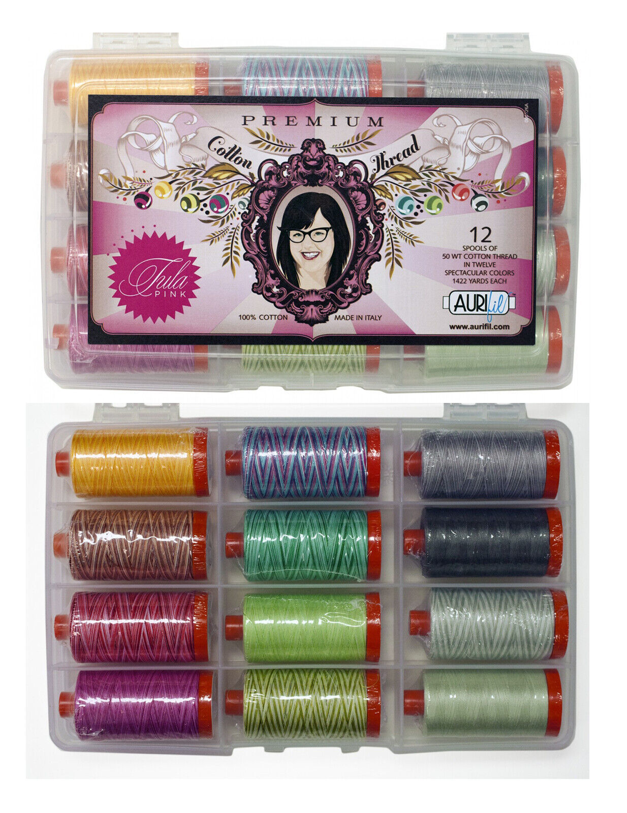 AURIfil Tula Pink Premium Collection 12 Large Spools 50wt Cotton.