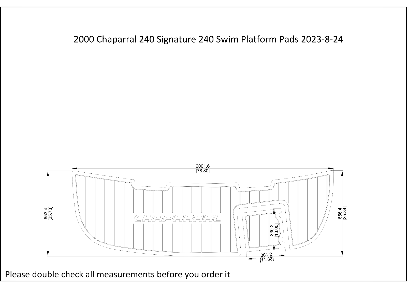 This listing is for one set of 2000 Chaparral 240 Signature 240 Swim Platform Pad as shown in the listing drawing.We will only use the listing decking drawing for your order fabrication. The listing decking photos are for reference only.