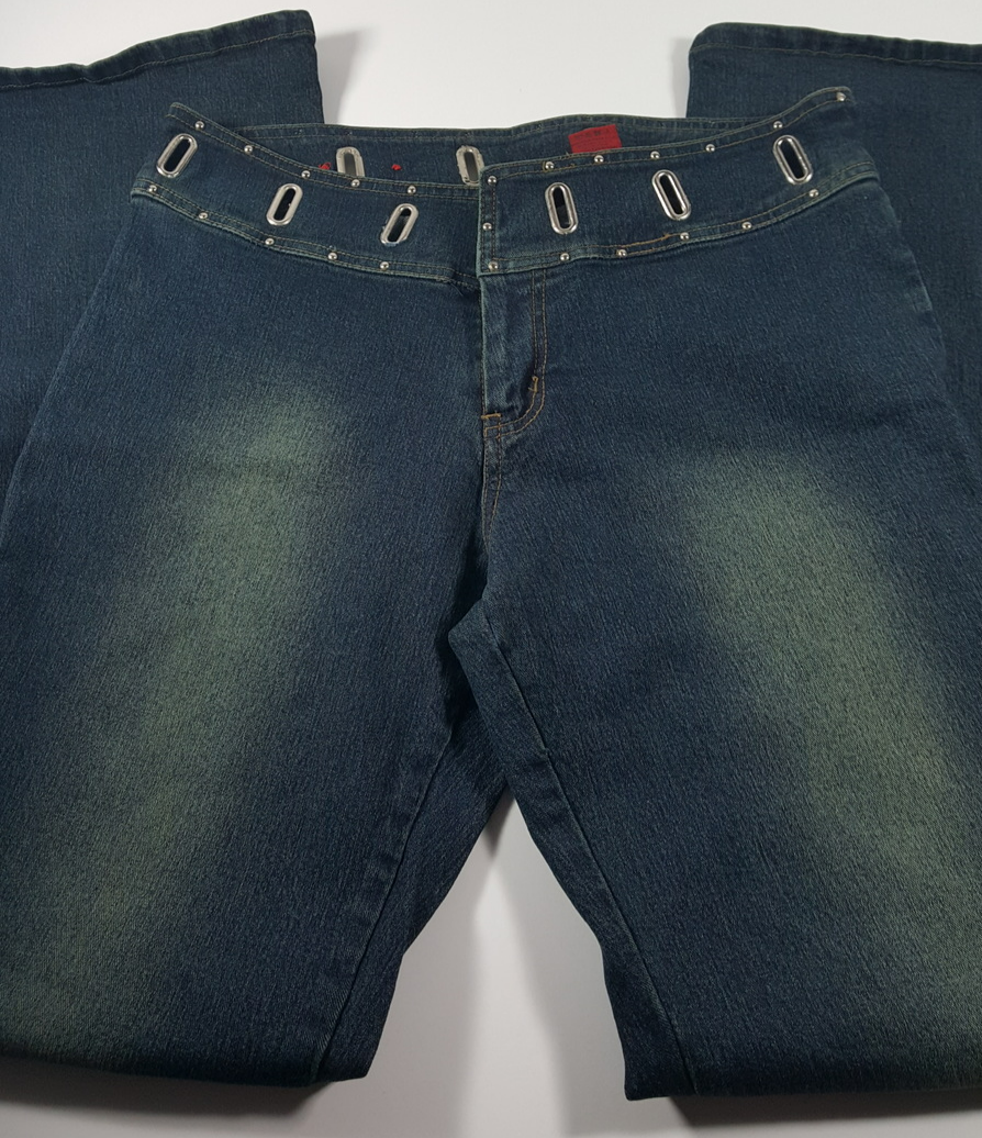 (Y24B4) VTG Jane Doe Bootcut Women Junior Blue Jeans Size 11/12 Grommet & Stud