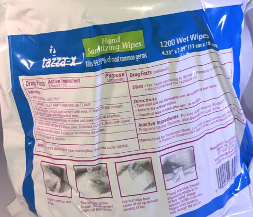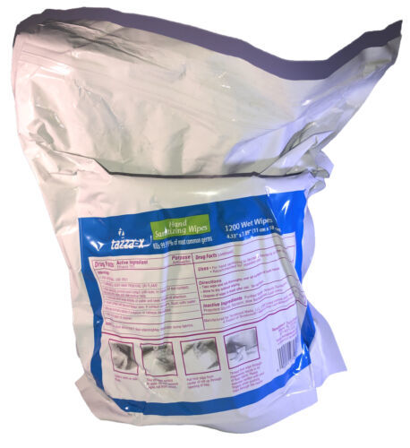 You Will Receive 1 ea Bag of 1,200 WIPES TAZZA-X - 4.33?x 7.09?HAND SANITIZING WIPES - PULL-BAG-Brand New-SHIPS N 24HRS.