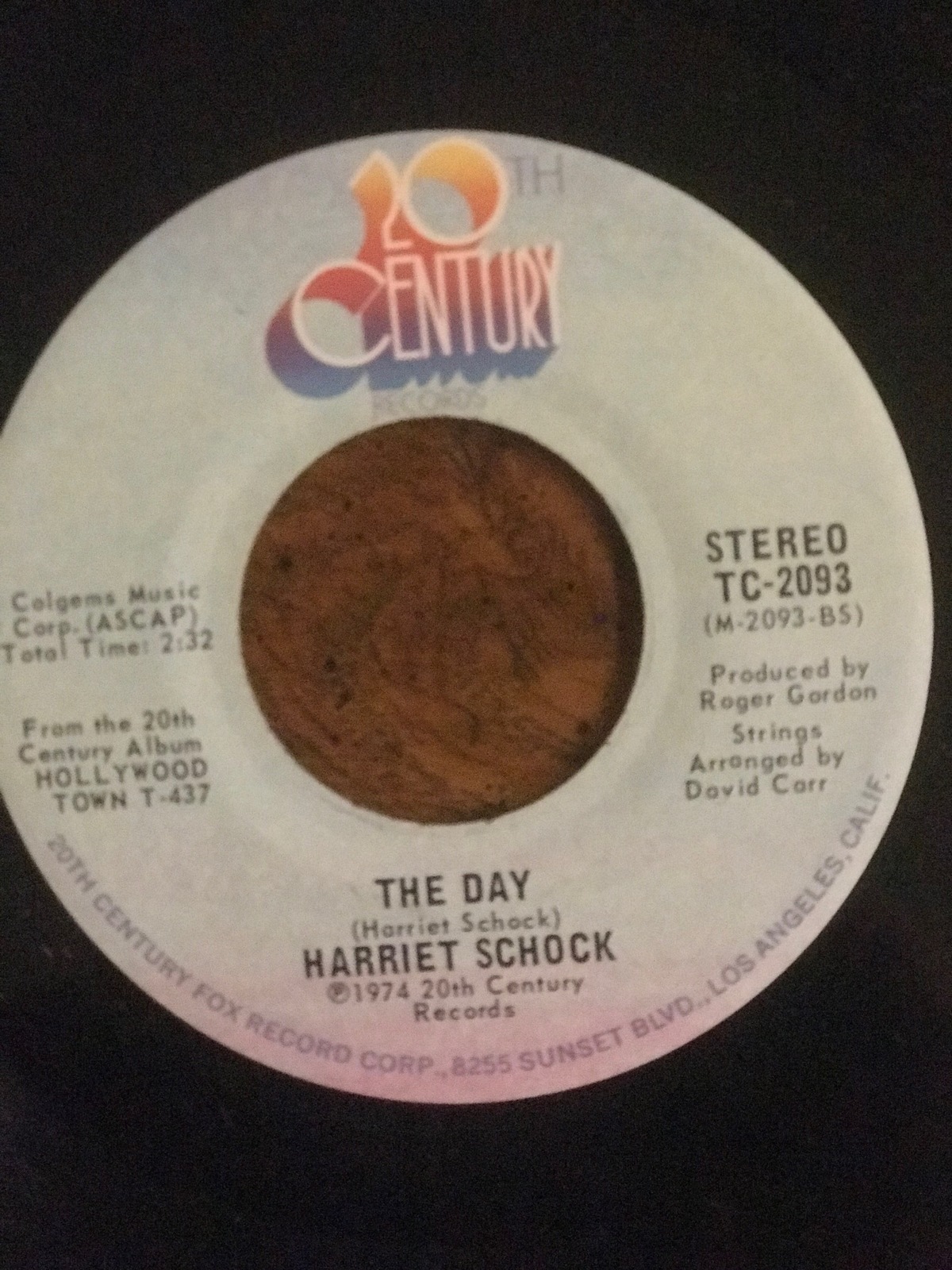 The Day/Hollywood Town 45 by Harriet Schook on the 20th Century Label. Excellent Condition.