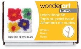 Wonderart Shaggy Flowers Latch Hook Kit, 12" X 12"