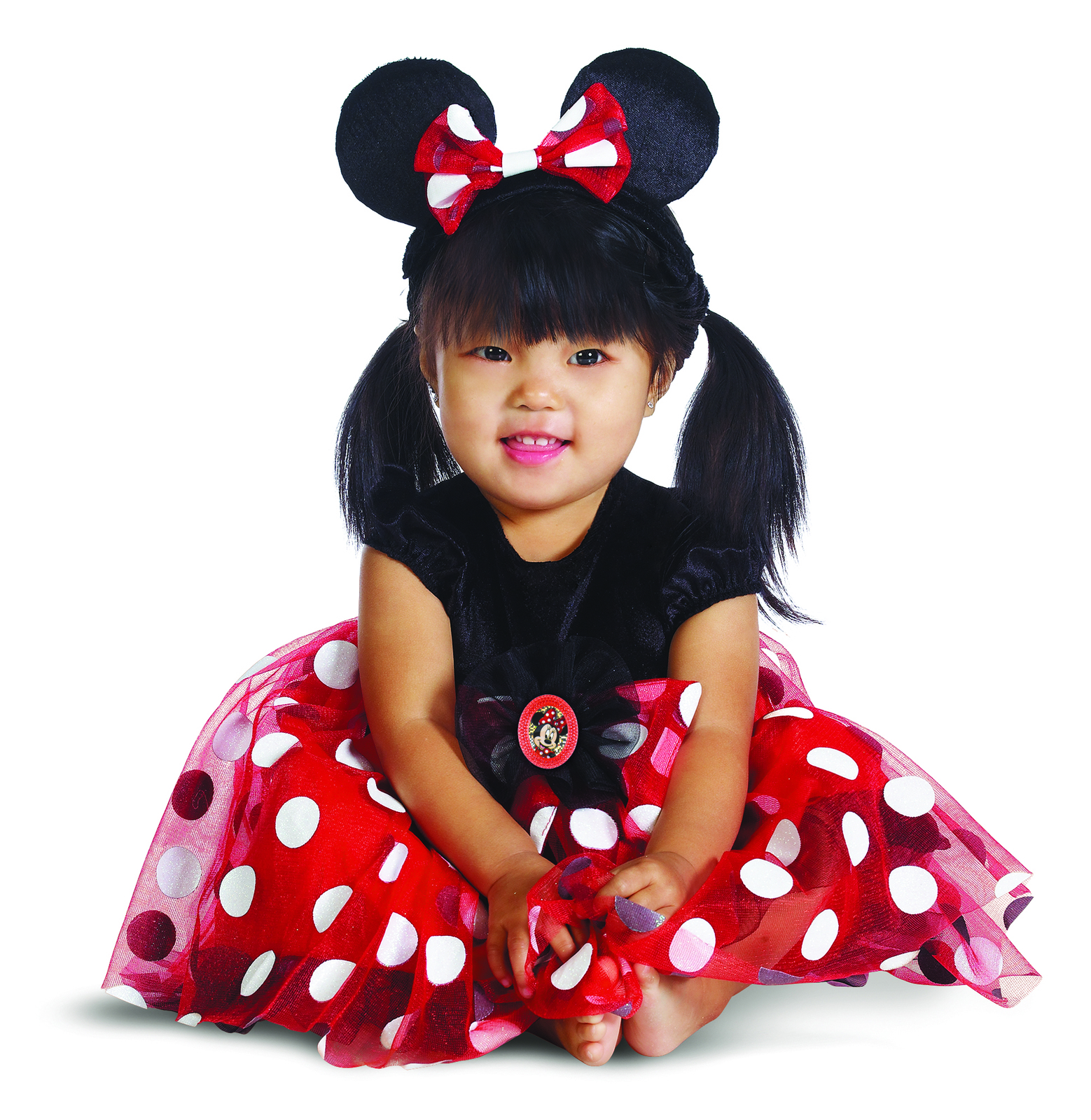 Put your little darling into this Baby Minnie Mouse Costume and wow your friends and family with her cuteness. This Minnie Mouse Infant Costume features a precious red and black dress with white polka-dots, layered tulle skirt and character cameo. Completing this oh-so-cute costume is the matching bow headband with mouse ears. Get the camera ready, this little Disney star will steal the show! Fits infants sizes 12 to 18 months.