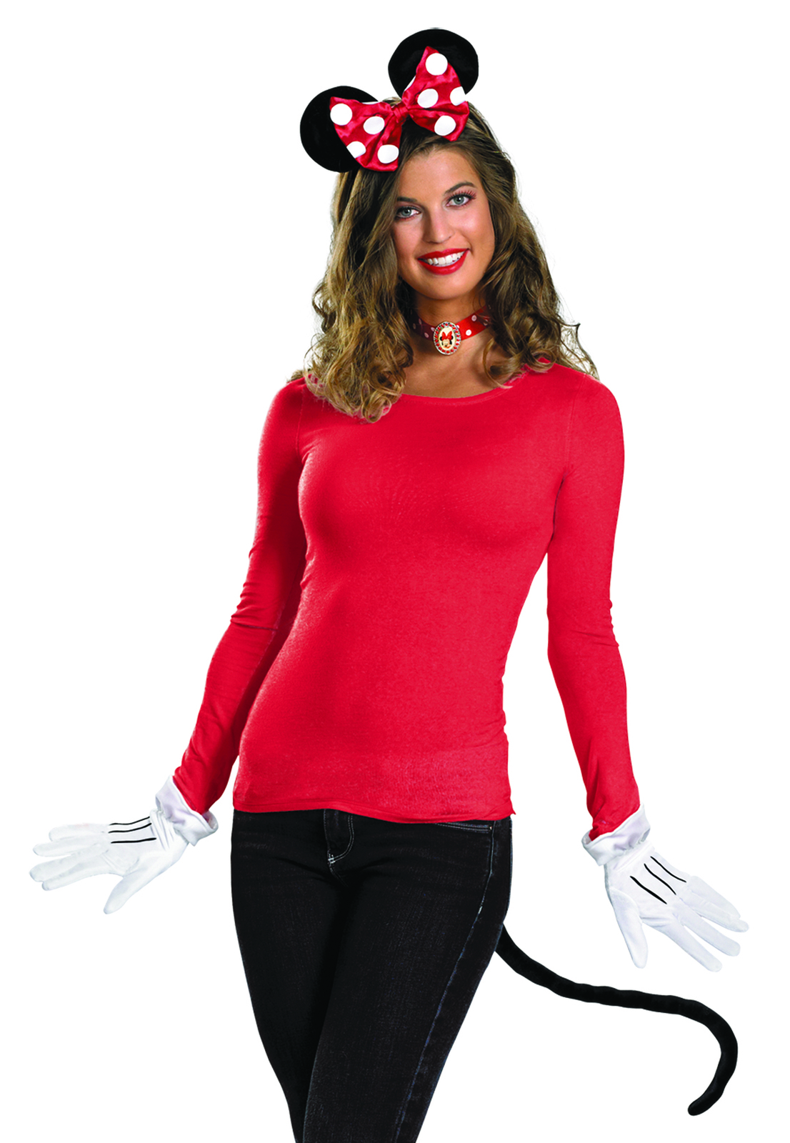 Character ears, choker with character cameo, gloves and tail. Supply your own red top and black pants to complete the look! One size fits most adults. Shoes not included.