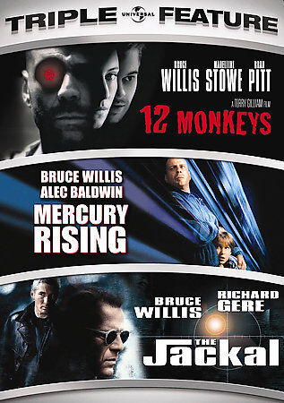 Bruce Willis Triple Feature DVD: 12 Monkeys, Mercury Rising, The Jackqal 2008 NW