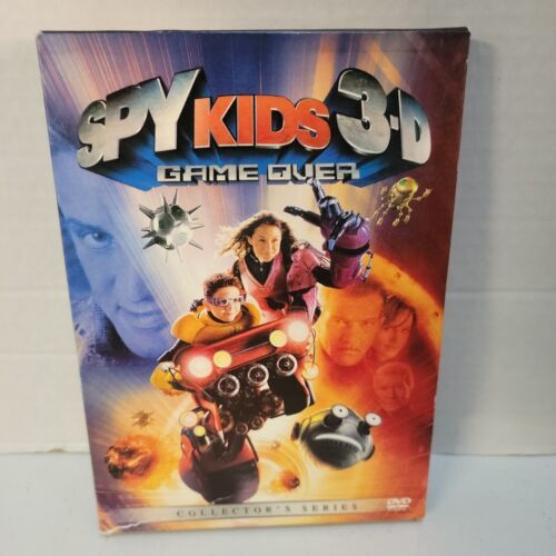 Get ready for adventure with the Spy Kids 3-D Game Over [Two-Disc Collector's Series] No Glasses DVD. This action-packed movie, directed by Robert Rodriguez, stars a talented cast and features both 2D and 3-D versions for your viewing pleasure. The movie has a G rating and falls under the Action Adventure genre, perfect for fans of the Spy Kids series.