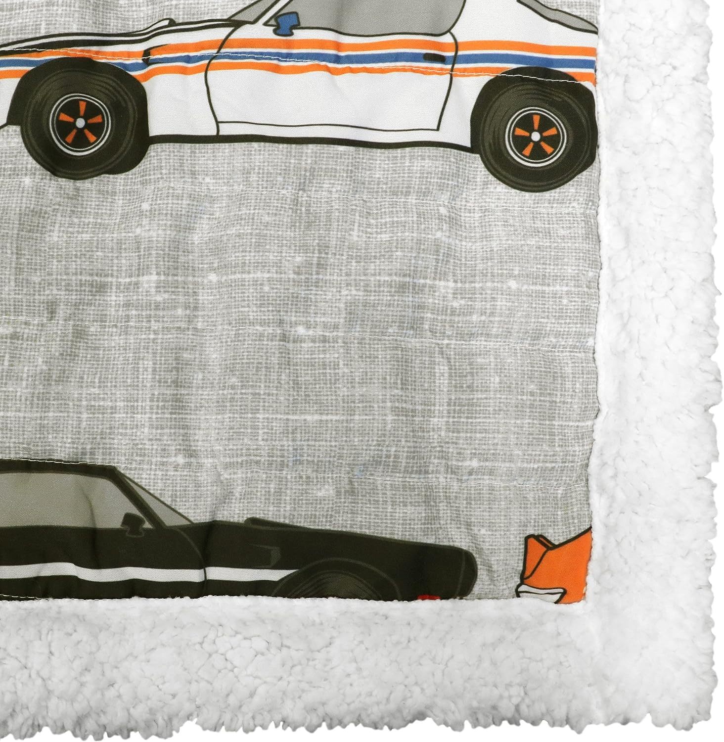 Blue And Orange 60" X 50" Sherpa Throw Blanket With Race Cars From Lush Décor.