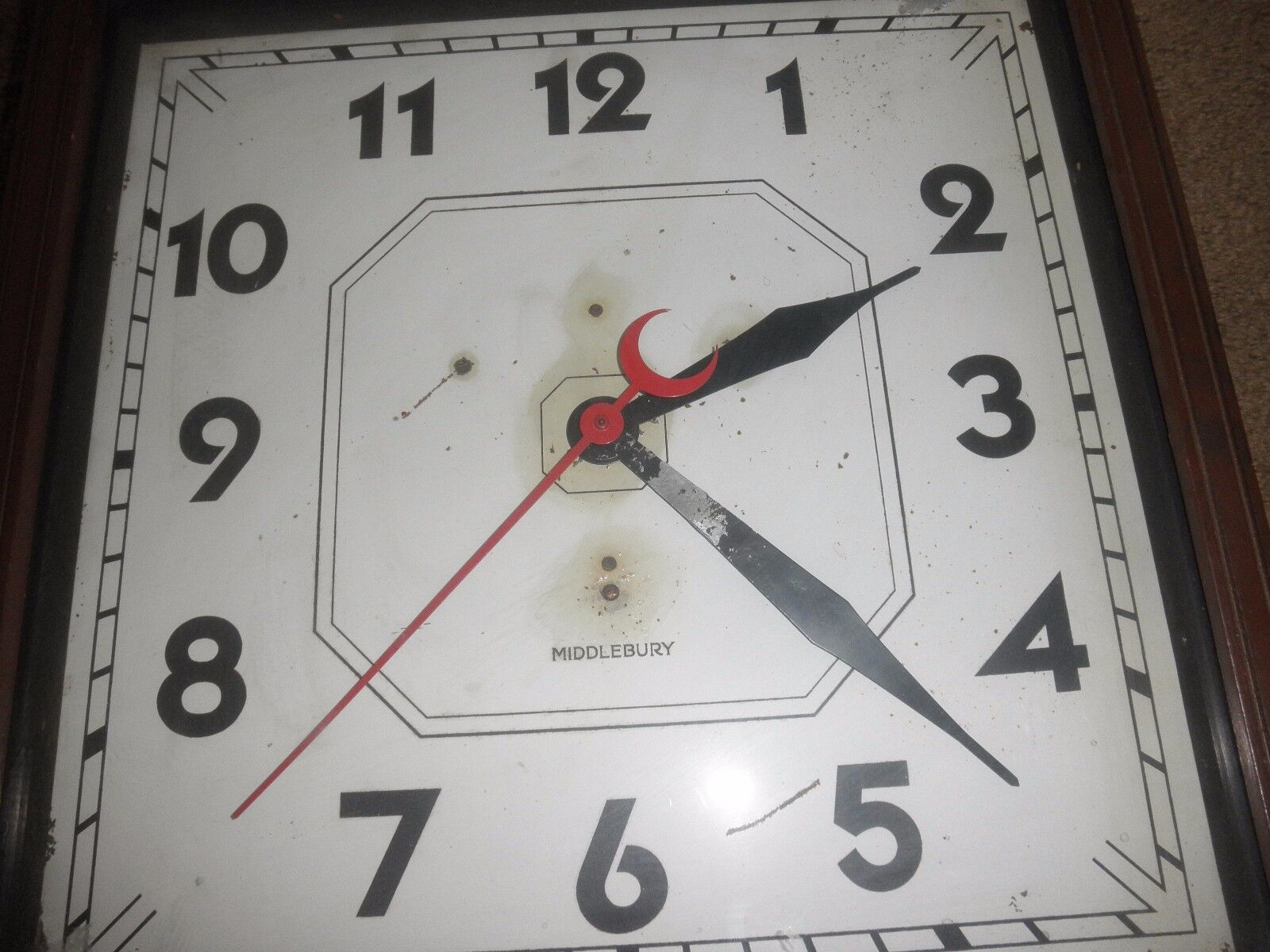 Vintage Middlebury Electric Art Deco Clock clock does not work- the person I bought from say to turn the dial in back and it works but no luck- sold as is 15x15x3.5
