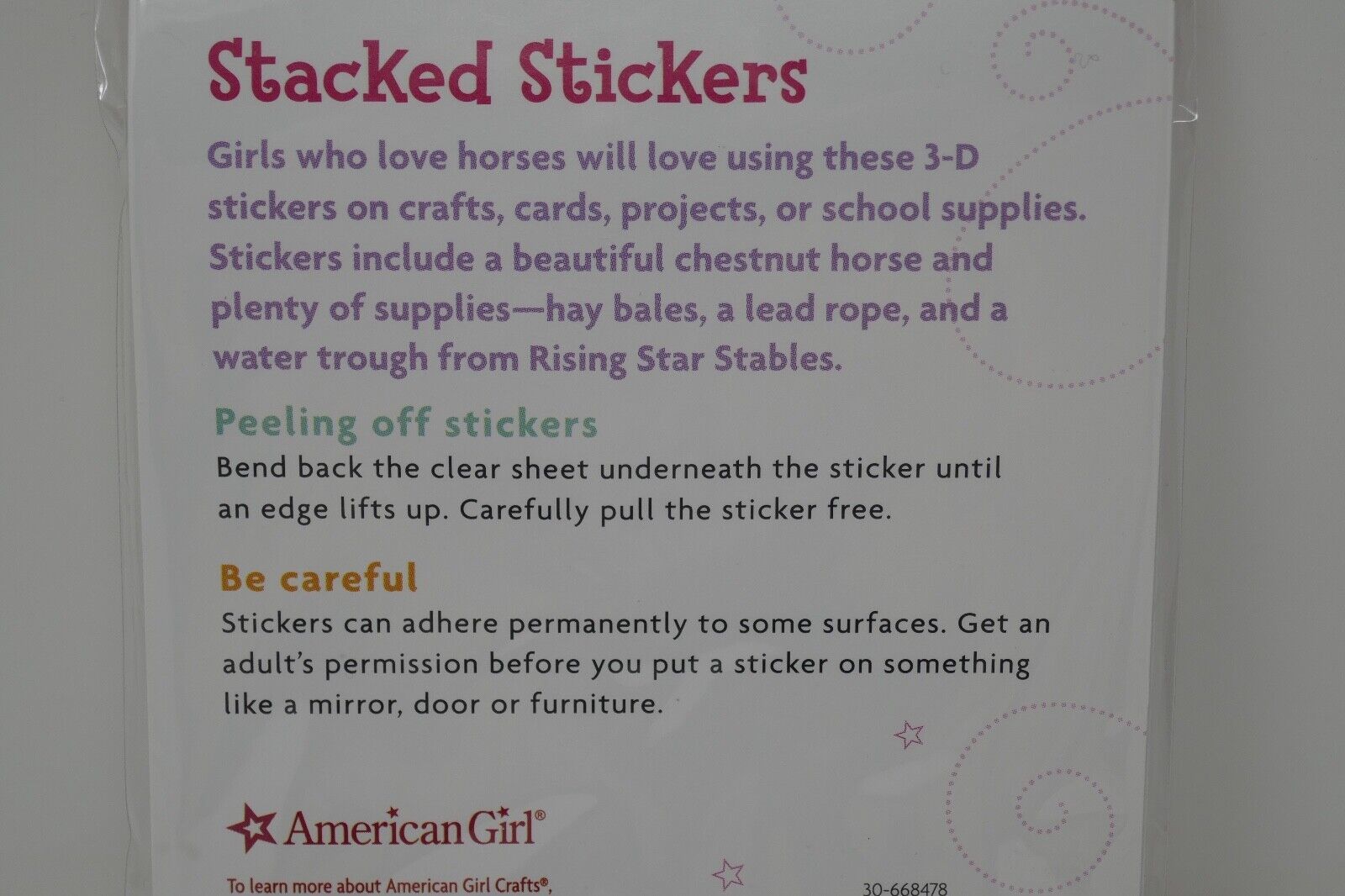 Up for sale is a package of American Girl Crafts Chestnut Horse Stacked Stickers. This is still sealed in the packaging!