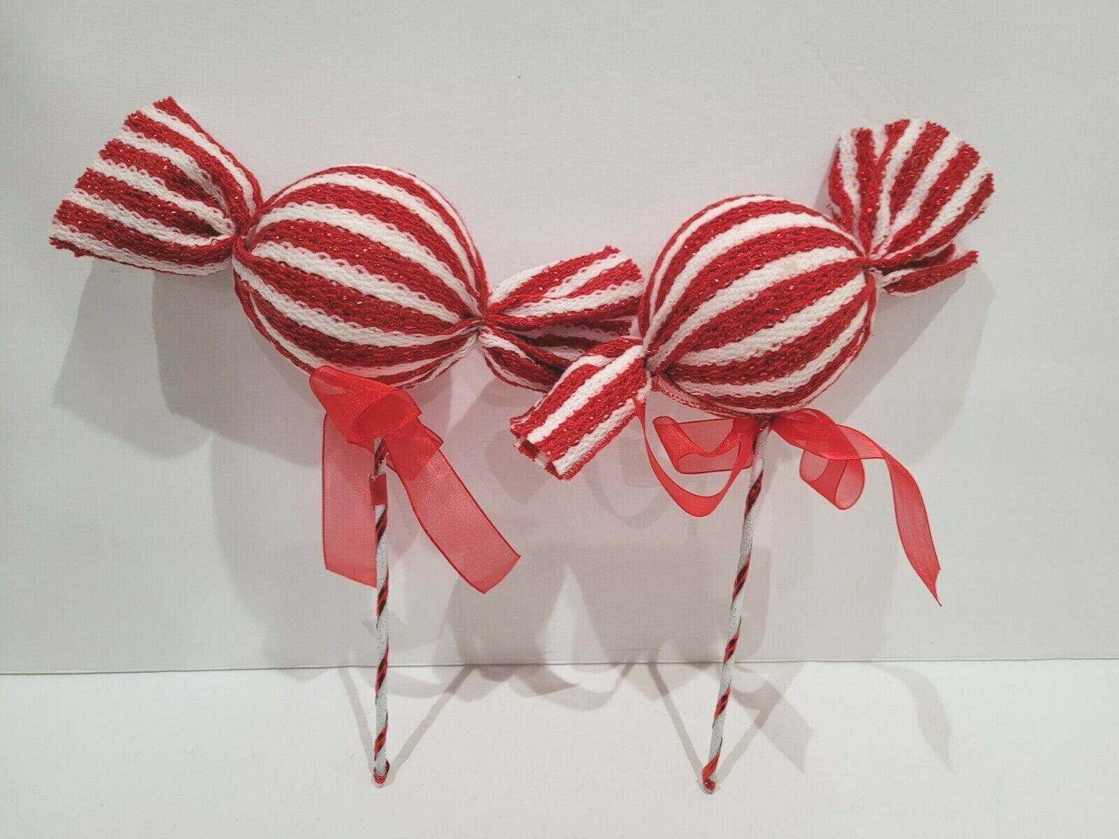 Christmas Ornament Pick Peppermint Candy Cane Gingerbread Red White Sweets 2pc