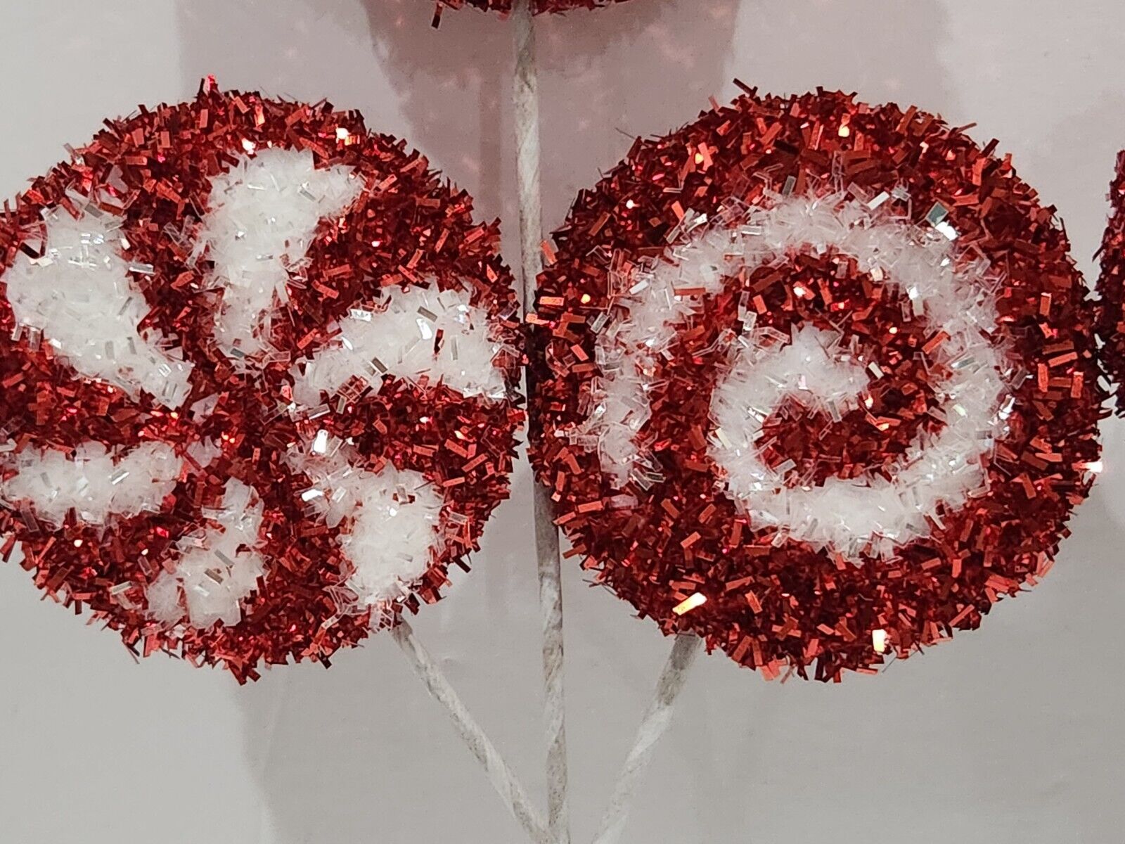 Up for sale we have this adorable red and white candy pick for your Christmas tree. The candy pick would look amazing on a peppermint or gingerbread theme tree. It is made of styrofoam and it measures approx 12" tall including the stick and the candy is approx 2.75" in diameter. See pictures 5-13 for just some of my other ornaments available.
