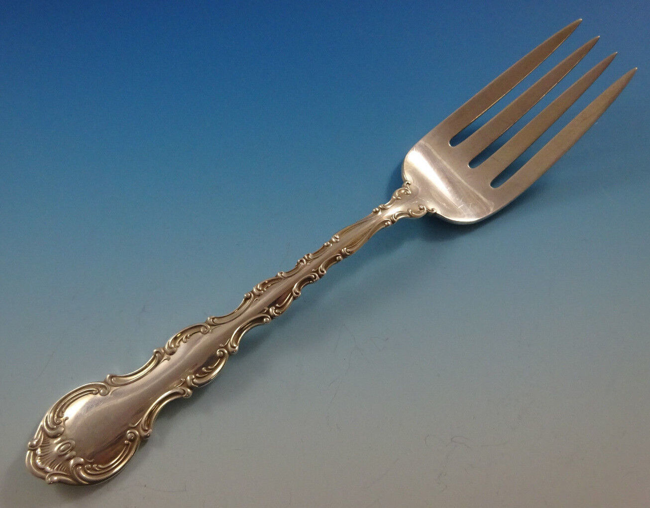 Flowing scroll work follows the gently curved handles of this magnificent pattern inspired by the rococo style of design favoring shell-like curves prevailing in 18th Century France. Named for the French hamlet near the border of Germany, this intricate pattern displays rococo exuberance with hints of lively German Baroque opulence. The finely carved details along the edge highlight a smooth central panel, and culminate in a subtle shell near the tip.