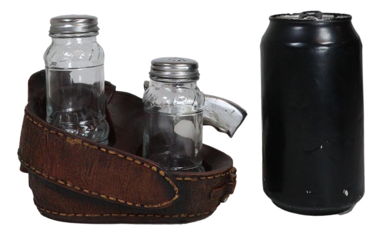 Western Star Cowboy Gun Faux Leather Holster Salt Pepper Shakers Holder Set