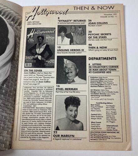 Hollywood Studio Magazine Then & Now November 1991 Joan Collins, Ethel Merman
