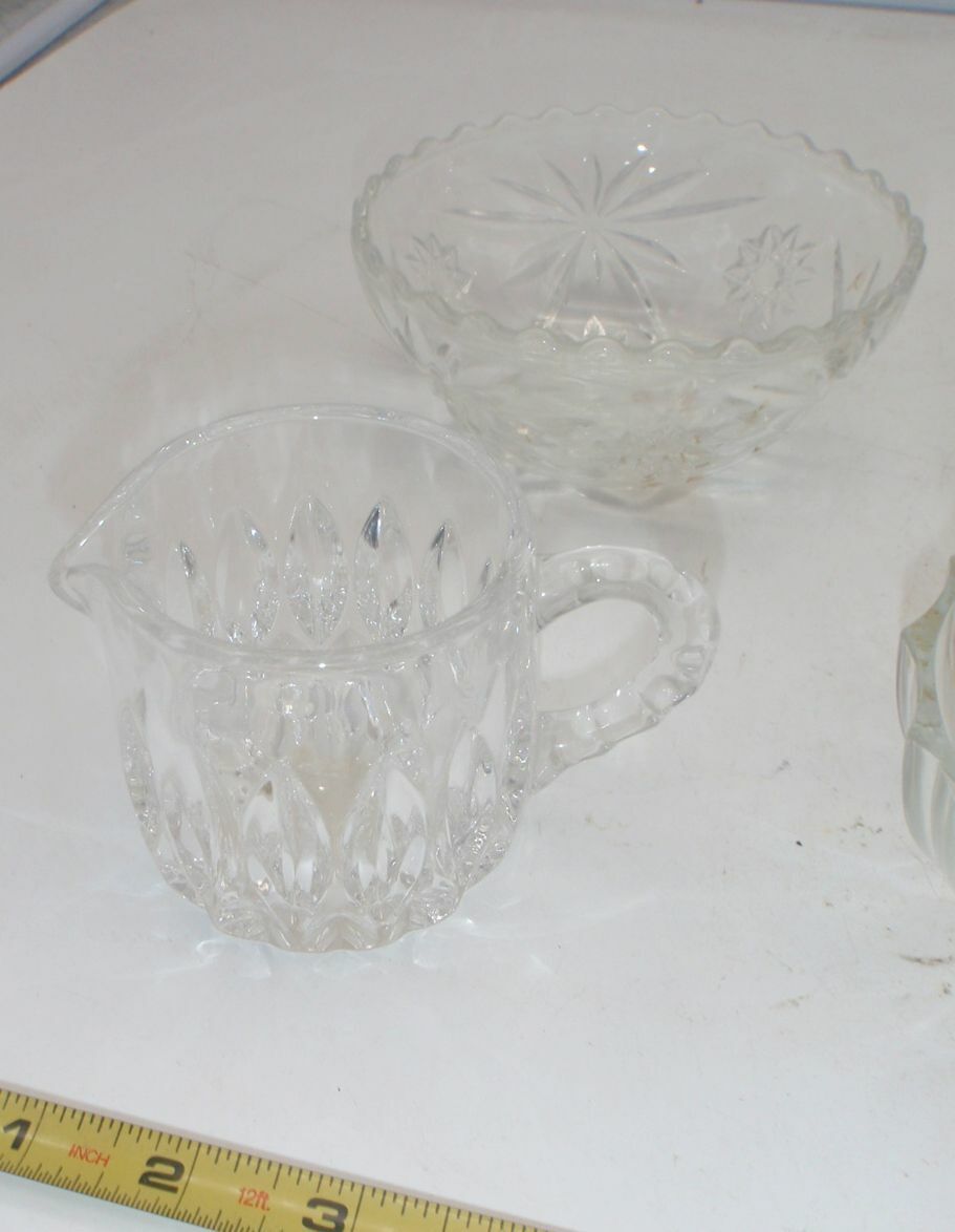 Lot Of Clear Glass Bowls - Dip, Coffee Cream Sugar Set, Misc. Sold as pictured.