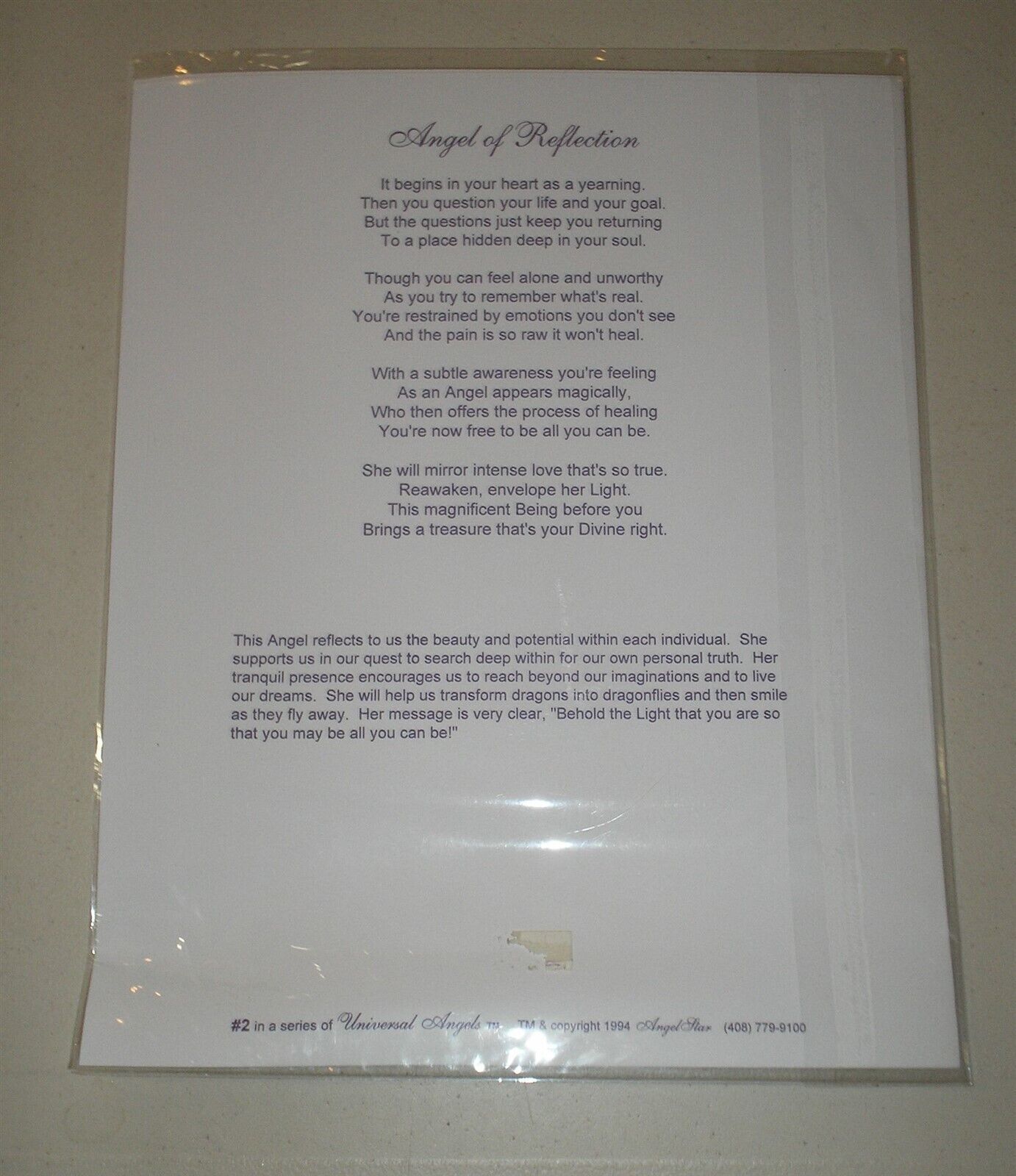 Angel Of Reflection Poem On Cardstock
