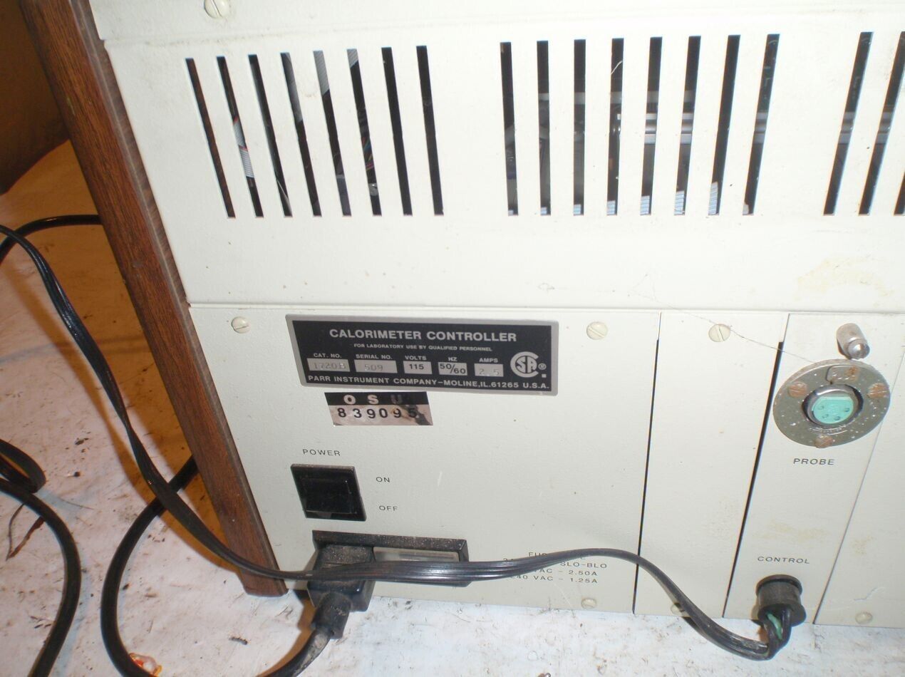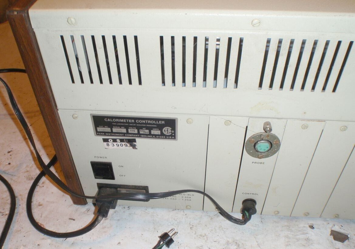 Parr Calorimeter Controller. This item does power on however, the alarm sounds constantly and the display does not function correctly. I am selling this for parts because of the alarm and display. Again, sold for parts or repair. Please view photos for physical condition.