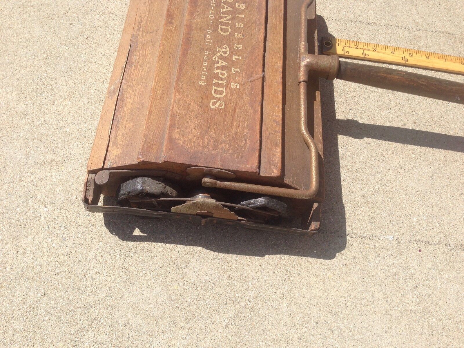 Vintage 1930s Bissell's Grand Rapids Hi-Lo Ball Bearing Self Cleaning Sweeper wood untested sold as is