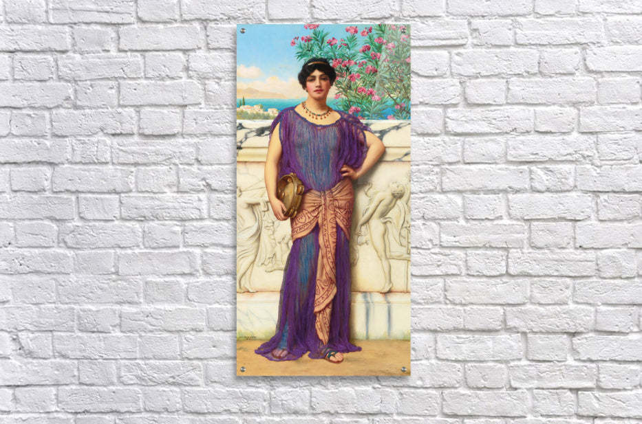 Add a touch of classical beauty to your home with our exquisite print of John William Godward's "The Tambourine Girl." This stunning painting, created in 1906, depicts a young girl in the style of ancient Greece, wearing a flowing pink robe and holding a tambourine.