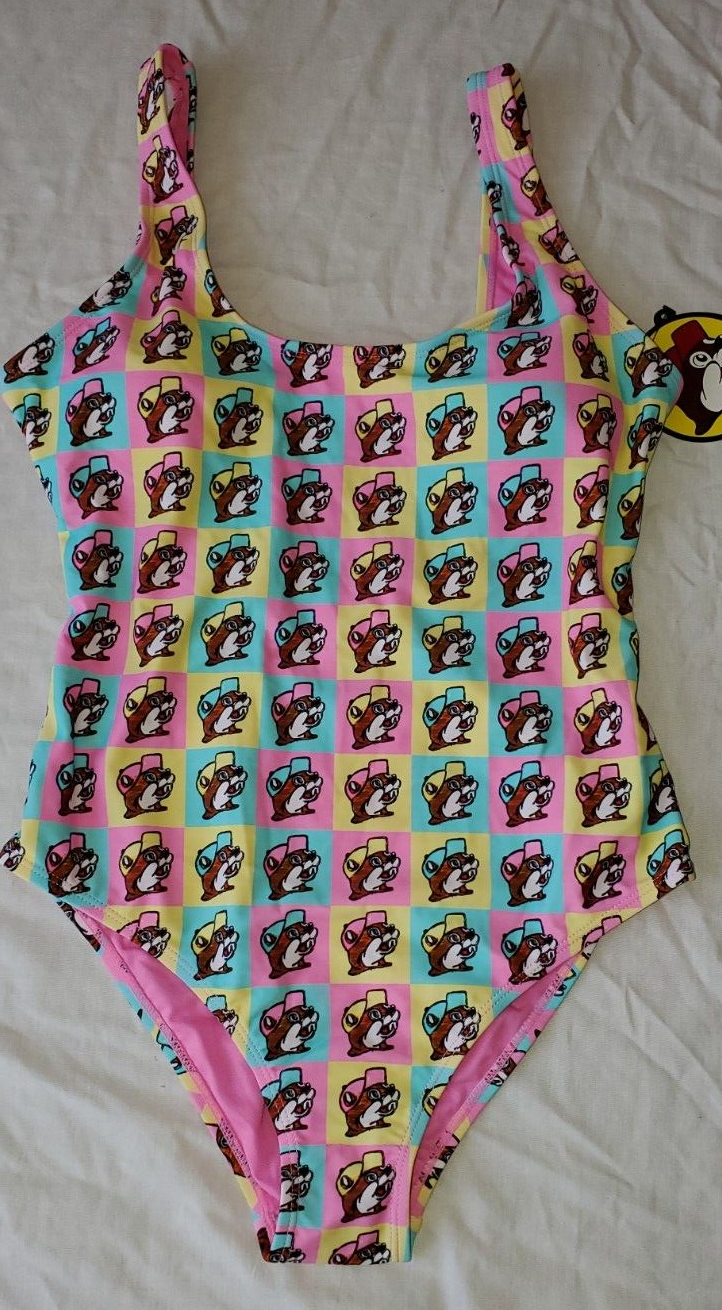 BUC-EE'S Women's 1 Piece Swim Suit SMALL Buc-ee Texas Flag Print New