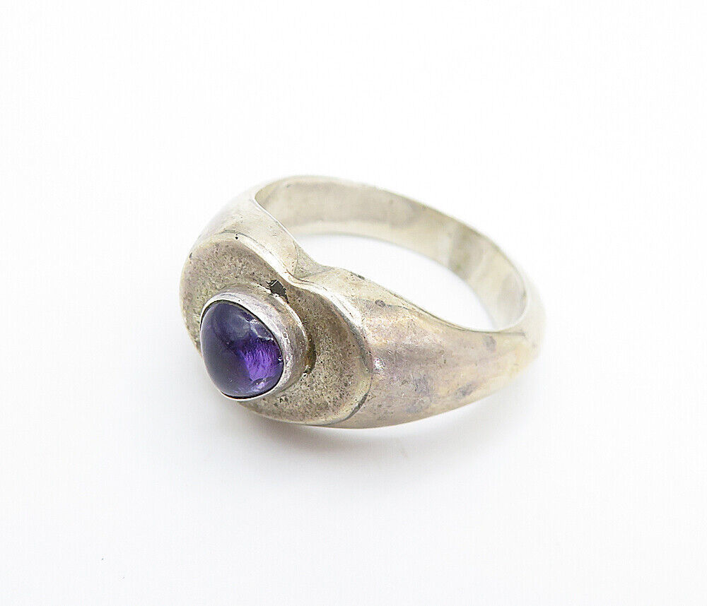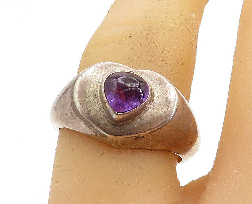 925 Sterling Silver - Vintage Amethyst Love Heart Solitaire Ring Sz 7.5 - RG7966
