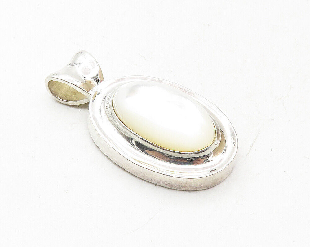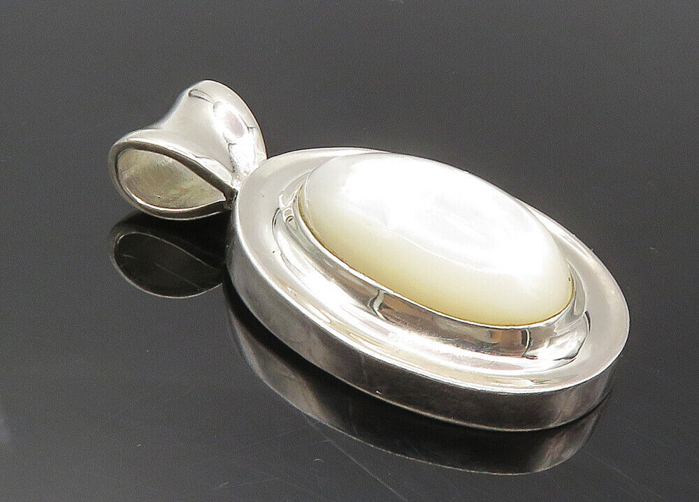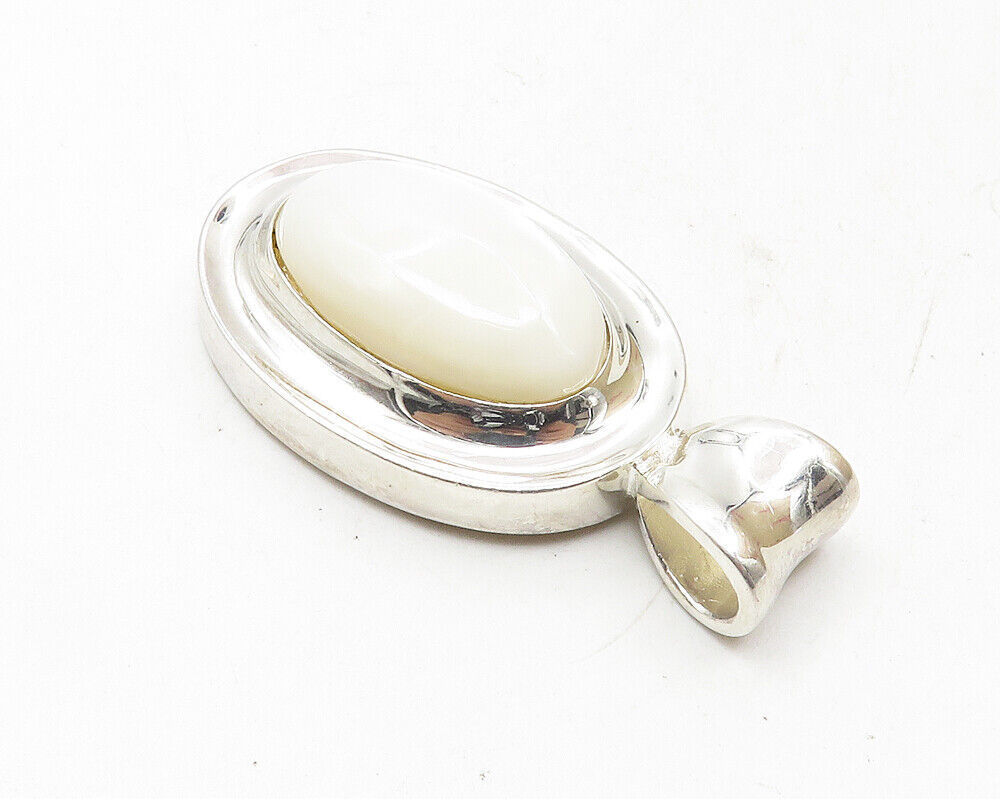 925 Sterling Silver - Mother Of Pearl Dome Shiny Oval Drop Pendant - PT7628