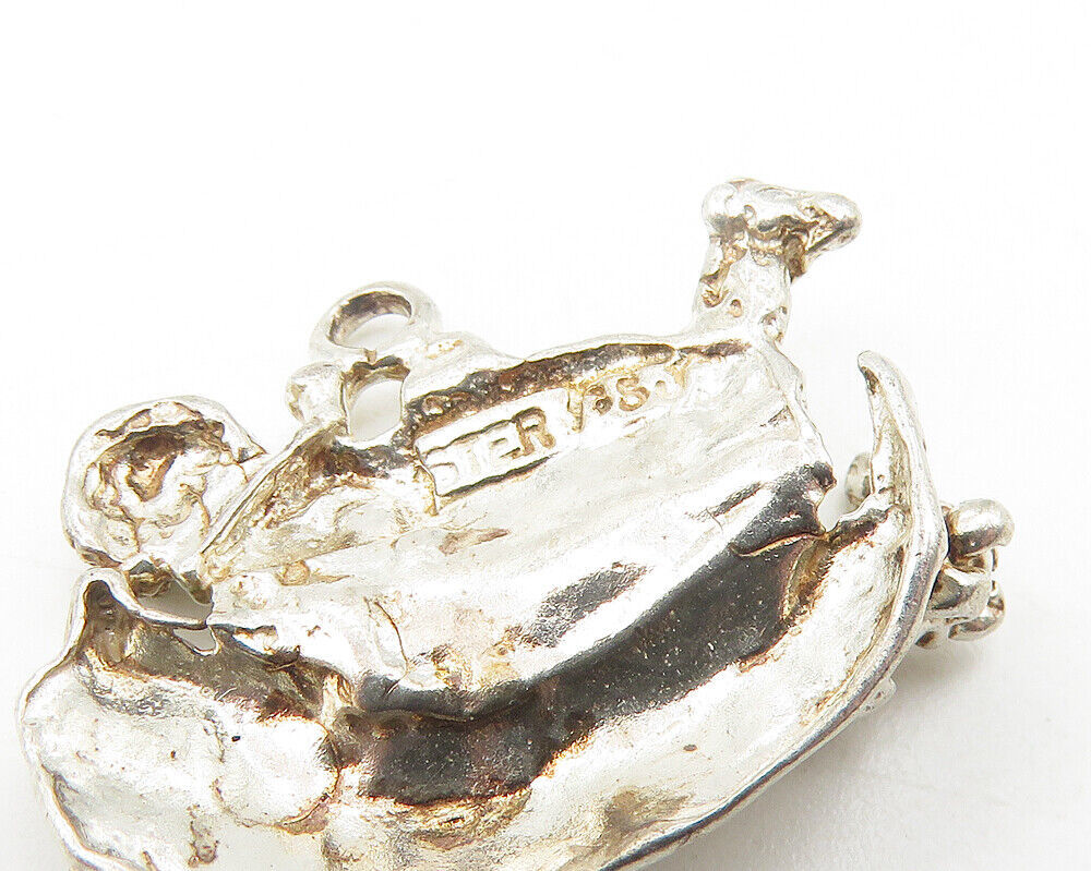 925 Sterling Silver - Vintage Noah's Arc Motif Religious Drop Pendant - PT9390