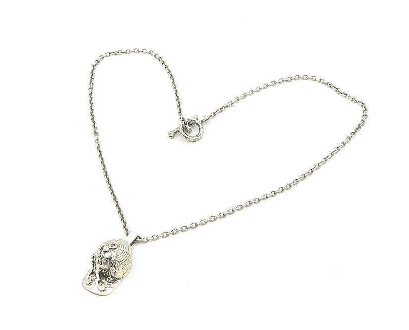 ED HARDY 925 Silver - Vintage Topaz Skull Baseball Cap Chain Necklace - NE3069