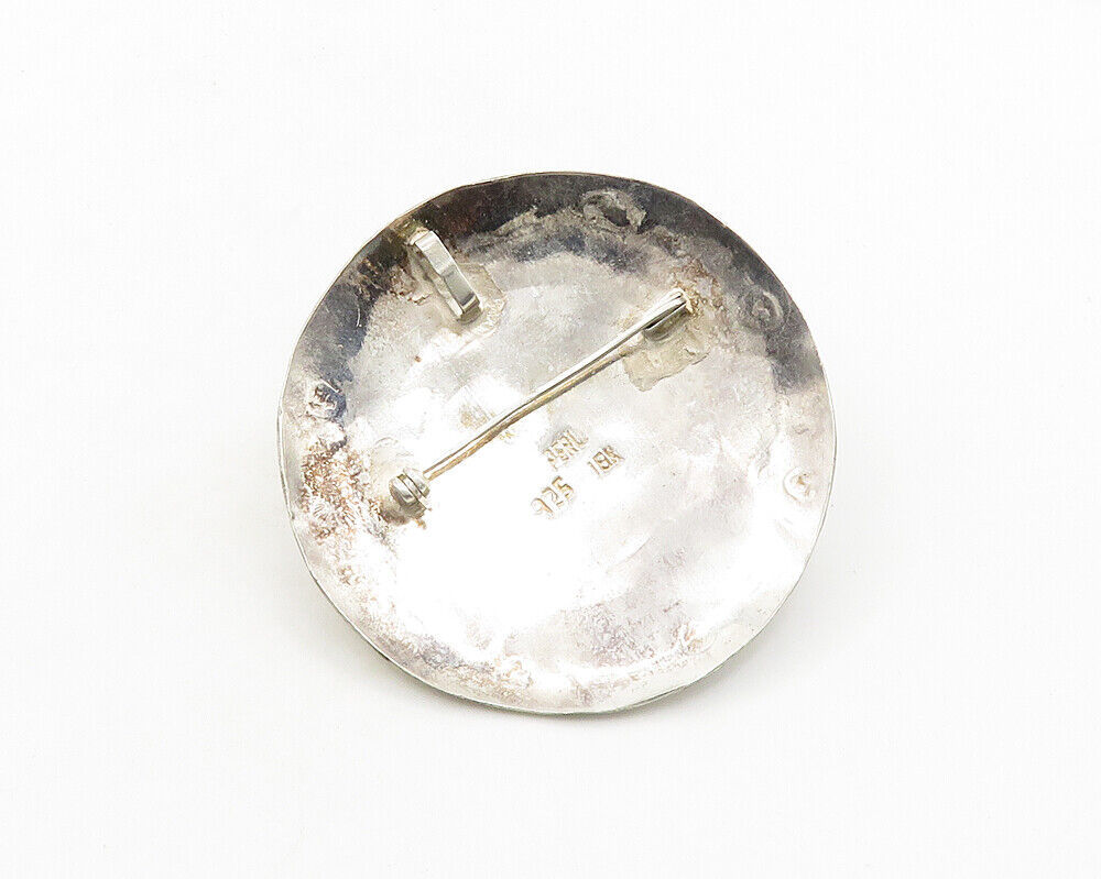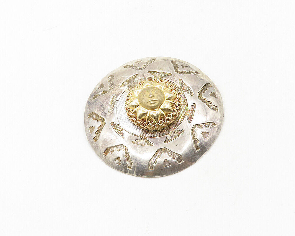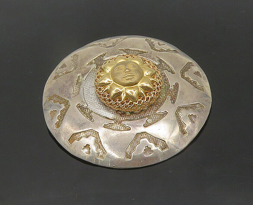 925 Silver & 18K GOLD - Vintage Shiny Two Tone Sun Face Brooch Pin - BP7545