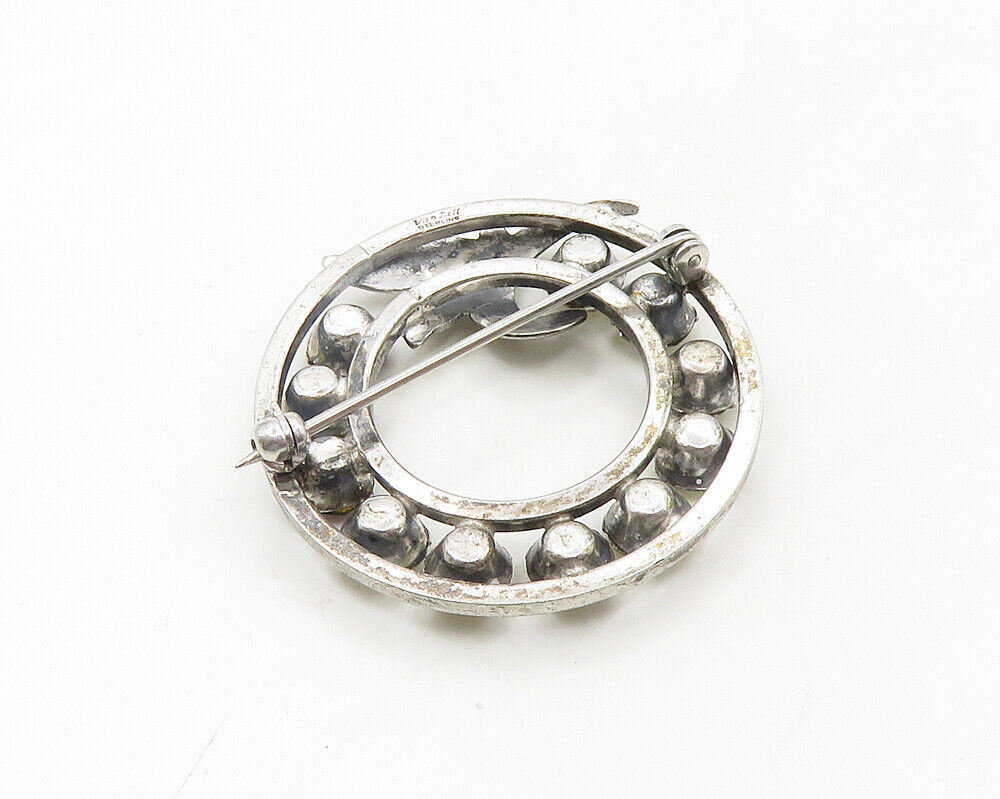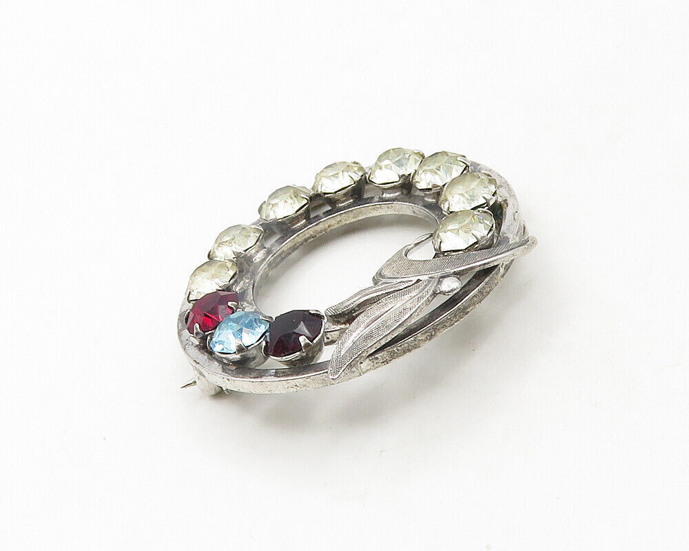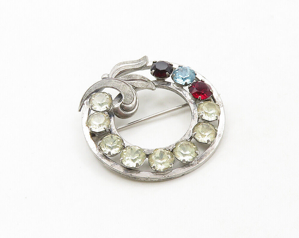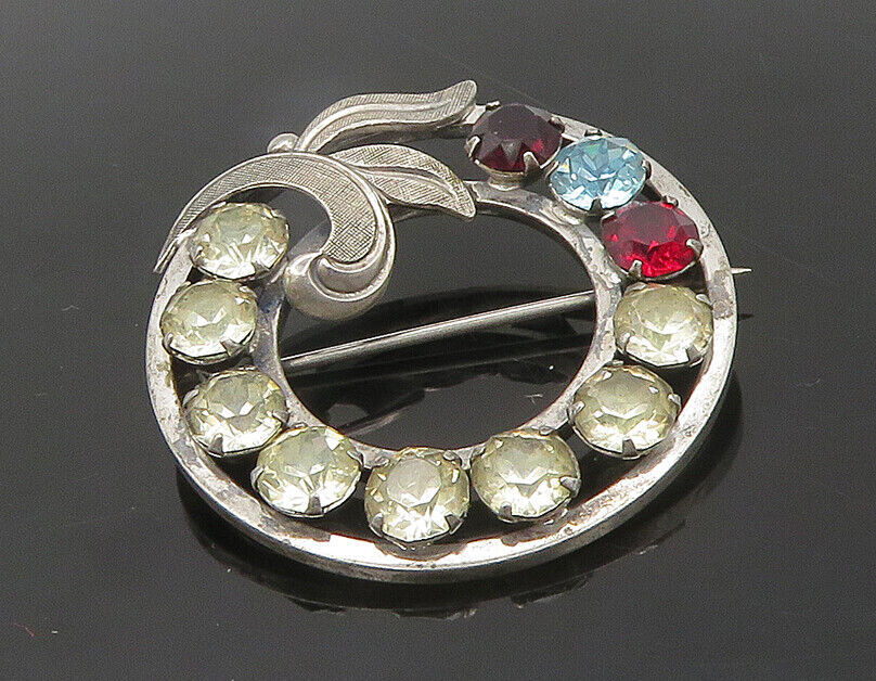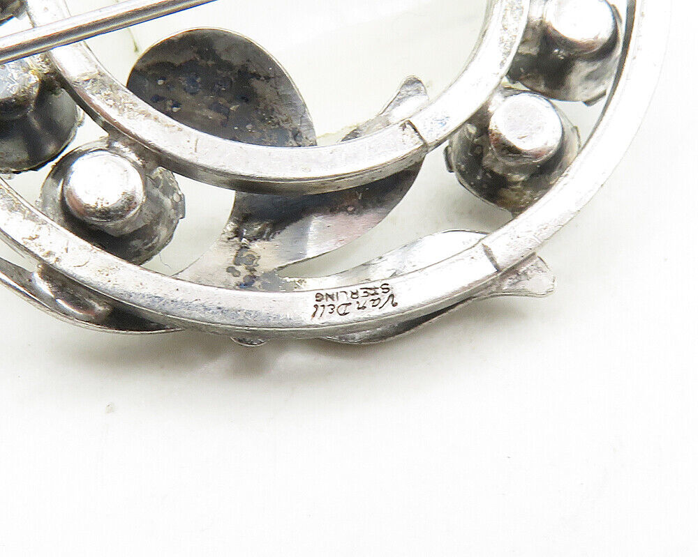 VAN DELL 925 Sterling Silver - Vintage Topaz & Garnet Wreath Brooch Pin - BP7589
