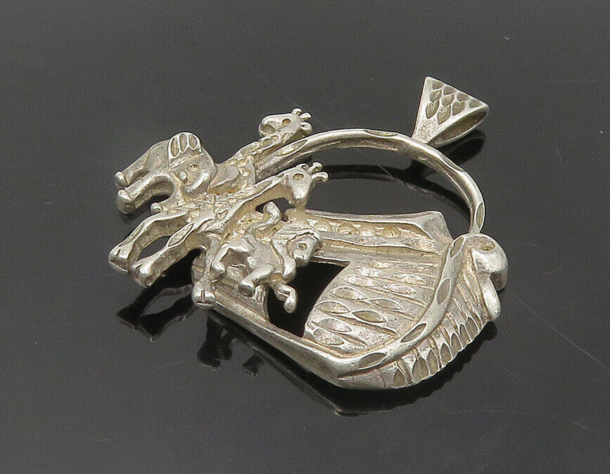 925 Sterling Silver - Vintage Diamond Cut Noah's Arc Theme Pendant - PT15115