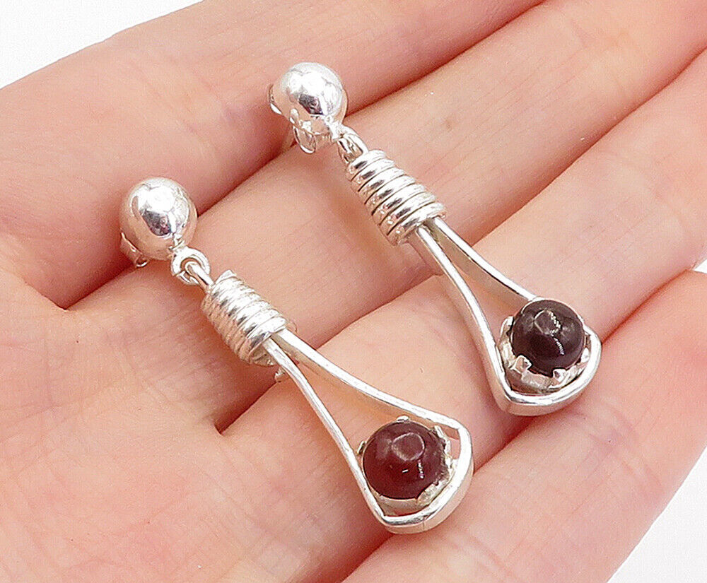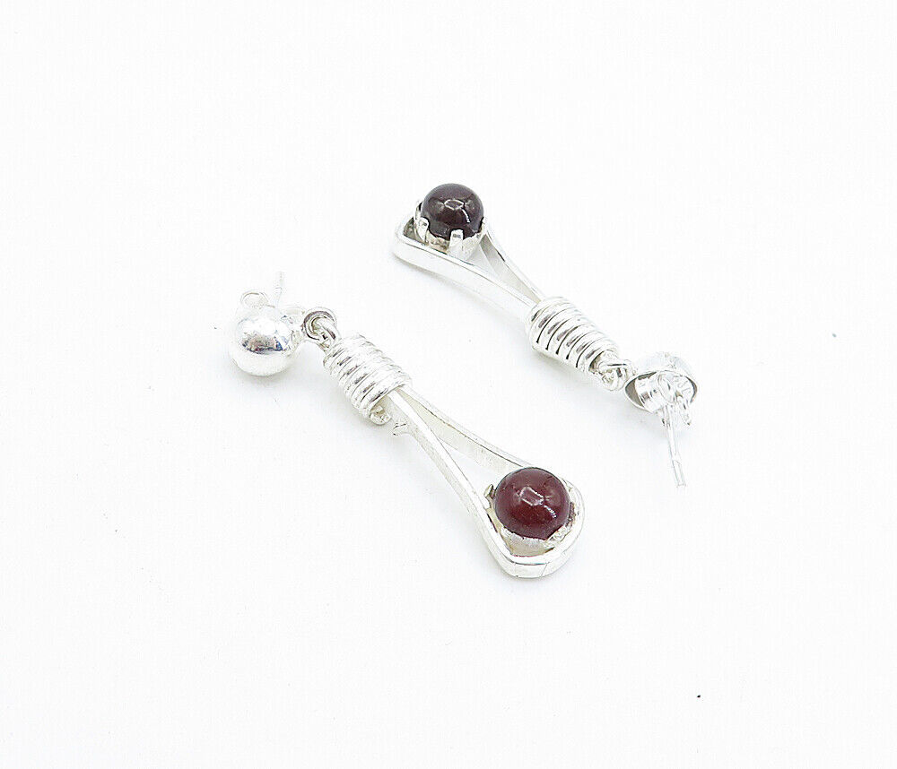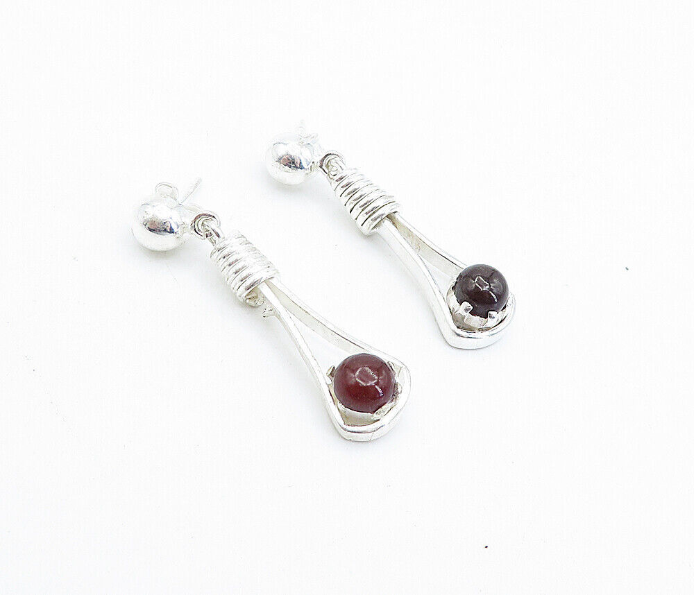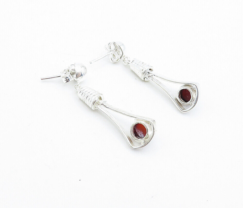 925 Sterling Silver - Cabochon Cut Carnelian Wrapped Dangle Earrings - EG2557