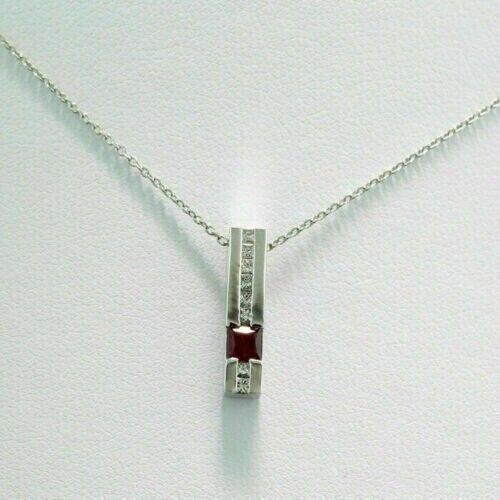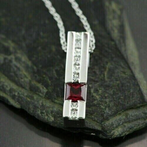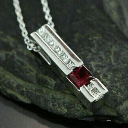 1.50Ct Princess Cut Simulated Red Garnet Bar Pendant 14K White Gold Plated